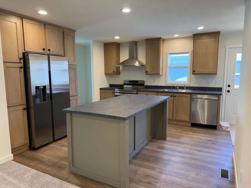 3 months FREE space rent @ approved sale price. Charming Brand-New Manufactured Home. Welcome to your dream home in this peaceful 55+ senior park! This manufactured home offers modern construction. Featuring an open concept layout, this home boasts a bright and spacious living area, perfect for relaxing or entertaining. The kitchen is equipped with stainless steel appliances, ample cabinetry, and stylish countertops. The primary suite offers a tranquil retreat with generous closet space, while additional rooms provide versatility for guests, a home office, or hobbies. Enjoy year-round comfort with a high-efficiency heat pump, ensuring cozy winters and cool summers. Green Building Verification Type: ENERGY STAR Certified Homes. Outside, you'll find a single-car carport. Potential Lease option.
