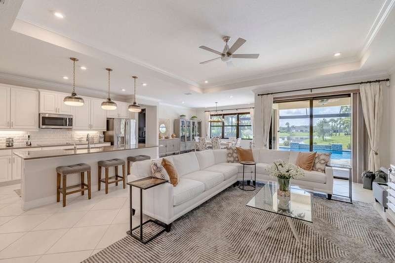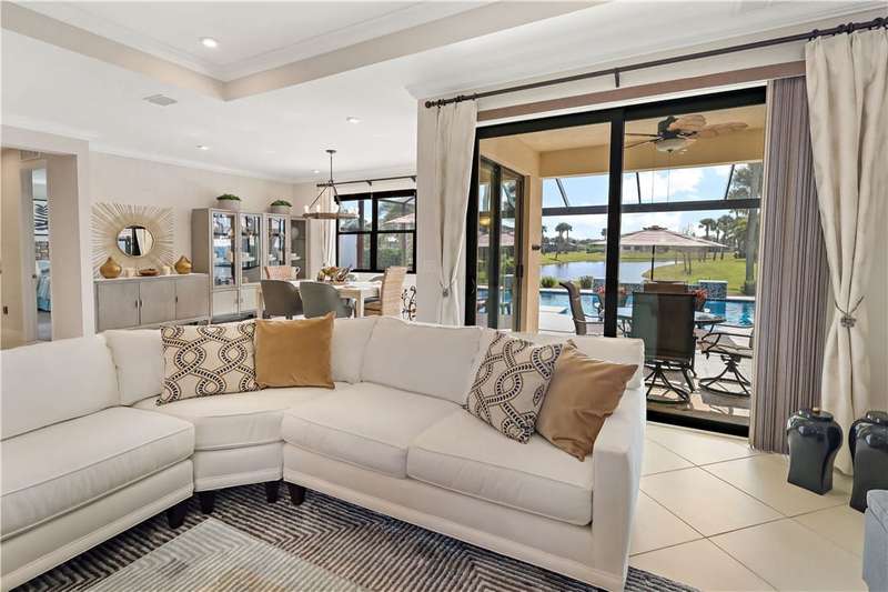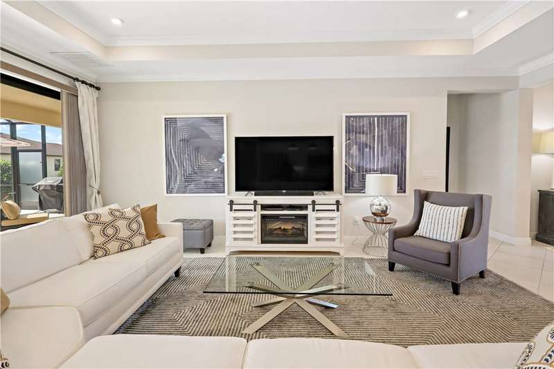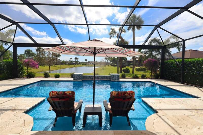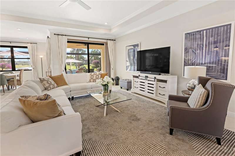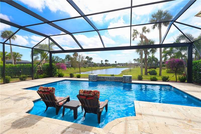 Lakefront Luxury in Vero Beach Fully Furnished & Turn-KeyExperience the best of Florida living in this elegant 3BD/2.5BA home with a versatile den, designed for both relaxation and entertaining. Perfectly positioned with desirable southern exposure, this residence showcases stunning lakefront views and a resort-style heated saltwater pool with sun shelf, LED lighting, and a screened lanai that creates an ideal setting for outdoor enjoyment.The home comes completely furnished and is filled with thoughtful upgrades and fine details, setting it apart from a basic builder home. The open split floor plan features expansive living areas filled with natural light. At the heart of the home, a gourmet kitchen boasts quartz countertops, premium appliances, and a large islandperfect for casual dining or entertaining guests. Solid CBS construction, impact-rated windows and doors, and a spacious 3-car garage provide both luxury and peace of mind. A private irrigation well ensures lush, vibrant landscaping year-round, adding to the homes curb appeal.Set within an exclusive gated community with low HOA fees, this property offers the perfect balance of privacy, security, and convenience. Just minutes away are Vero Beachs pristine beaches, boutique shopping, fine dining, golf courses, and top-rated medical facilities.Vero Beach is often referred to as one of Floridas hidden gems, offering uncrowded beaches, a thriving arts and cultural scene, and a relaxed coastal lifestyle. Travel to and from Vero has also never been easier: Breeze Airways provides convenient nonstop service to key U.S. destinations, and JetBlue has recently launched direct flights from Vero Beach Regional Airport, enhancing connectivity for residents and visitors alike.Whether youre searching for a primary residence or a seasonal retreat, this fully furnished, upgraded, move-in ready lakefront home captures the essence of luxury, convenience, and Floridas coastal charm.