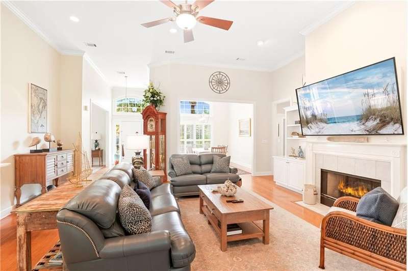 Located in the sought-after St. Simons Island Club at Retreat, 112 Biltmore is a well-maintained home that blends timeless charm with comfortable living spaces. located on the 10th hole of the Retreat golf course in the St. Simons Island Club. This beautiful home features spacious living areas with soaring ceilings, abundant natural light, and an inviting floor plan designed for both comfort and entertaining friends and family. The sunroom offers sweeping views of the golf course, creating the perfect spot to relax and unwind. This 4-bedroom, 4-bath residence offers thoughtfully designed interiors, including hardwood and tile flooring, detailed millwork, and a gas-log fireplace. The kitchen provides ample cabinet space, breakfast bar, and a casual dining nook, opening to the inviting great room. The primary suite is spacious and offers a large primary bath and a custom designed walk-in closet. Additional bedrooms, each with a private bath, provide flexibility for guests or a home office. Outdoors features include mature trees, landscaped grounds, a fenced backyard overlooking the 10th fairway, as well as a private deck ideal for entertaining or quiet island evenings. This home has a new roof and all new windows which have made the home energy efficient and extra quiet. Close to golf, beaches, and village shopping, this lovingly maintained home is move in ready and offers an ideal combination of golf course views, comfortable living, and an enviable St. Simons Island address.