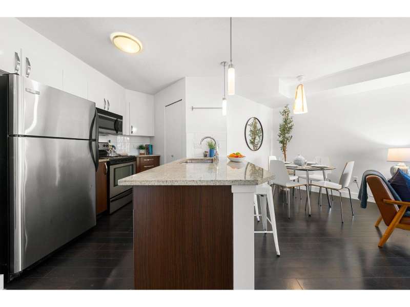 Welcome to EVO, a well-managed low-rise building just steps from Gateway SkyTrain Station. This bright 1 bed, 1 bath condo is the perfect starter home or investment, featuring an open layout and private outlook that overlooks the courtyard. The unit features fresh paint throughout, laminate floors, stone counters, and stainless appliances, plus in-suite laundry. The building offers secure underground parking & bike room. Enjoy the convenience of nearby shops, cafes, and Central City Mall, plus parks, recreation, SFU Surrey, and quick access to Downtown Vancouver. A smart buy in a growing community! Open Sunday September 21st 230-400pm (id:58403)