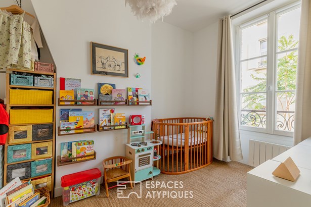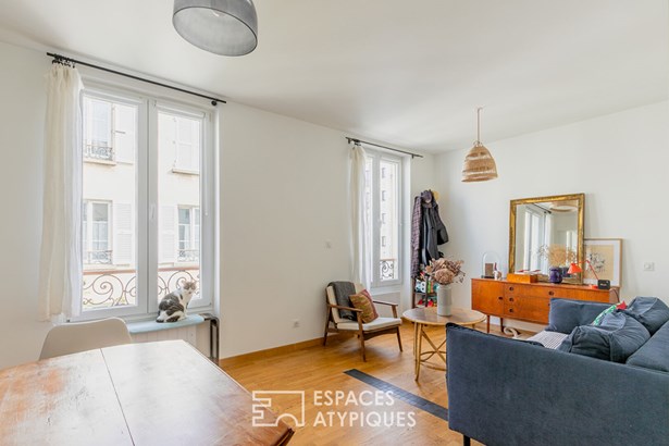 Between Raoul Nordling Square and Aligre Market, this 56m2 (Carrez law) duplex apartment is located in a quiet courtyard on the 2nd and 3rd floors of a building without an elevator.