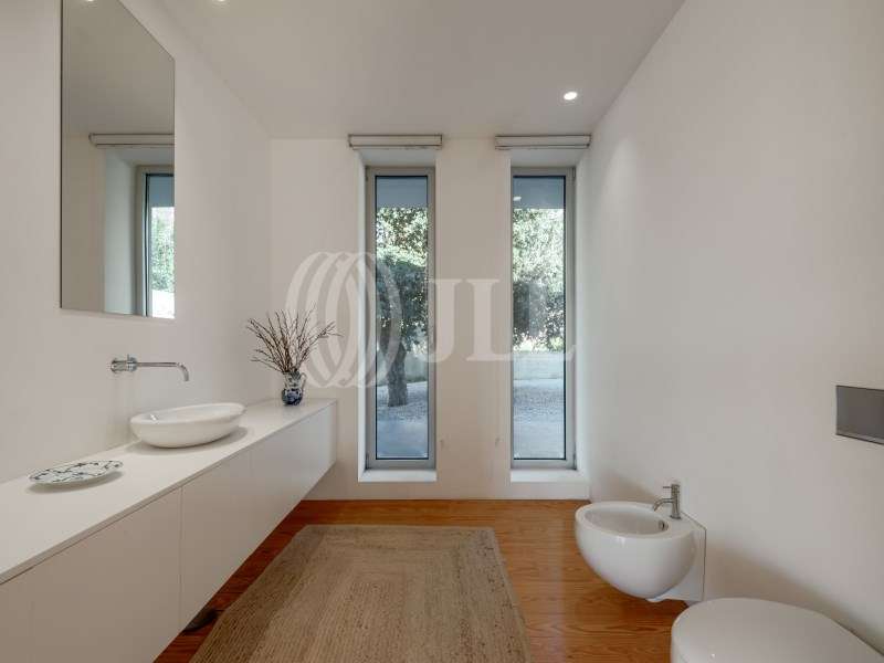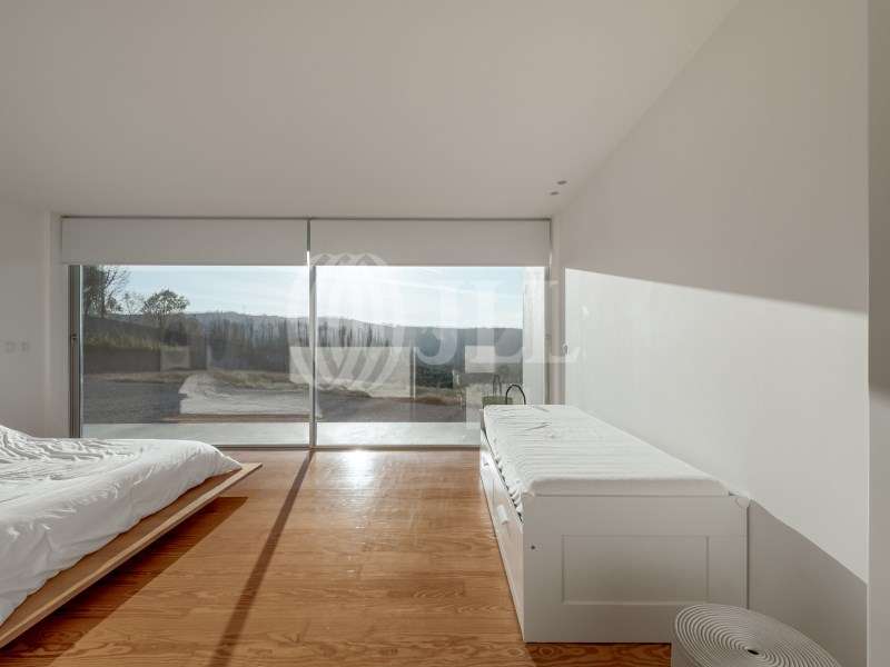 Moradia T4, com 351 m² de área bruta de construção, jardim, piscina e garagem, inserida num lote de terreno de 10 851 m², em Paredes, Porto. A moradia, de linhas contemporâneas e arquitetura minimalista, distribui-se por três pisos subcave, cave e piso térreo. Encontra-se atualmente em projeto de licenciamento, estando previsto um aumento da área bruta de construção para 916,58 m² após a conclusão do processo. O projeto foi concebido para garantir o máximo conforto, funcionalidade e integração na paisagem envolvente. Na cave encontra-se um amplo espaço em open space, ideal para criar uma zona de lazer, ginásio ou sala de cinema, uma casa de banho completa e uma lavandaria funcional. No piso térreo, a moradia contempla uma cozinha totalmente equipada, sala de estar e jantar em open space com 79 m², uma casa de banho completa, três suítes com áreas entre 30 m² e 39 m², e um quarto adicional. A zona privativa dispõe de acesso direto ao exterior, que conta com uma área de aproximadamente 90 m². No interior, destacam-se os acabamentos e equipamentos de elevada qualidade: caixilharias Slim-Slide da Arkial (Souto Moura), cozinha equipada com eletrodomésticos Miele, piso radiante, recuperador de calor na sala e sistema de aspiração central. A moradia possui ainda painéis fotovoltaicos, sistema de domótica e uma estação de tratamento de águas. A zona exterior é composta por uma ampla área ajardinada murada, piscina, área de barbecue e uma garagem com 82 m². Estrategicamente situada numa zona rural tranquila de Paredes, esta moradia beneficia de uma excelente localização, com acesso rápido à A41 e à EN309-2, permitindo chegar ao Porto em cerca de 20 minutos. A envolvente dispõe de uma variada oferta de serviços essenciais, incluindo supermercados, escolas e comércio local, garantindo total comodidade. Categoria Energética: B- #ref:92148