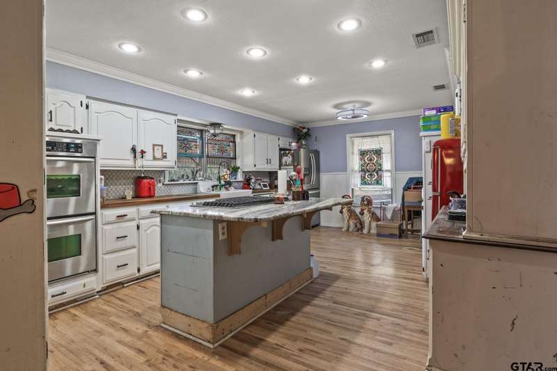 Welcome to this charming 3-bedroom, 2-bathroom home, offering both comfort and versatility! This property has a brand new roof!! It is situated on a spacious 6 acre lot in between Monticello and Lake Bob Sandlin, this property includes a separate building that can be used for a business, extra storage, or your personal creative space. In addition, the property features a classic barn and a grain barn, adding character and functionality. The home is crossfenced, has two entrances, providing privacy and security for pets or livestock, and includes an RV hookup with septic, perfect for accommodating visitors or for your own use. The property will boast a new roof before the closing date. The kitchen is a true highlight, featuring a gorgeous apron sink, butcher block countertops, and elegant granite finishes. Whether you're preparing meals for your family or entertaining guests, this kitchen is both functional and stylish. The flooring is a mixture of real hardwood and beautiful brick flooring. With plenty of space, both inside and out, this property offers endless opportunities to suit your lifestyle. Don’t miss out on this traditional ranch home with lots of vintage character. Possible roof credit!