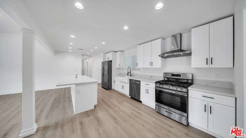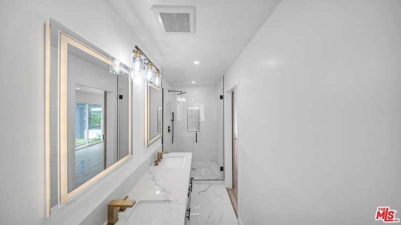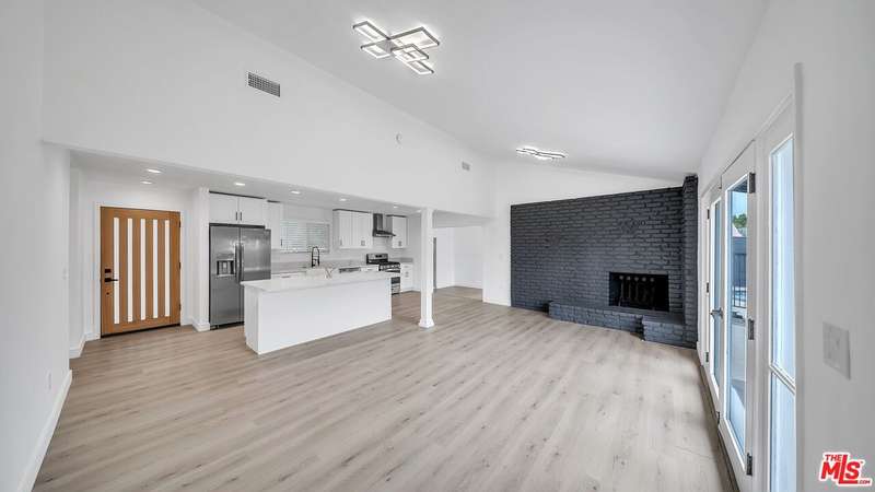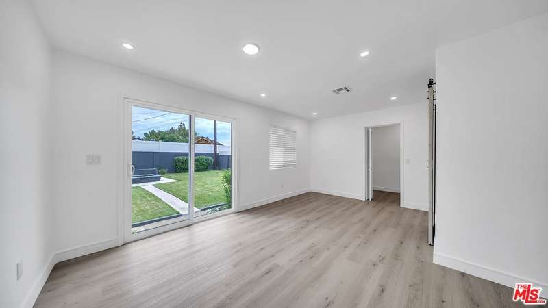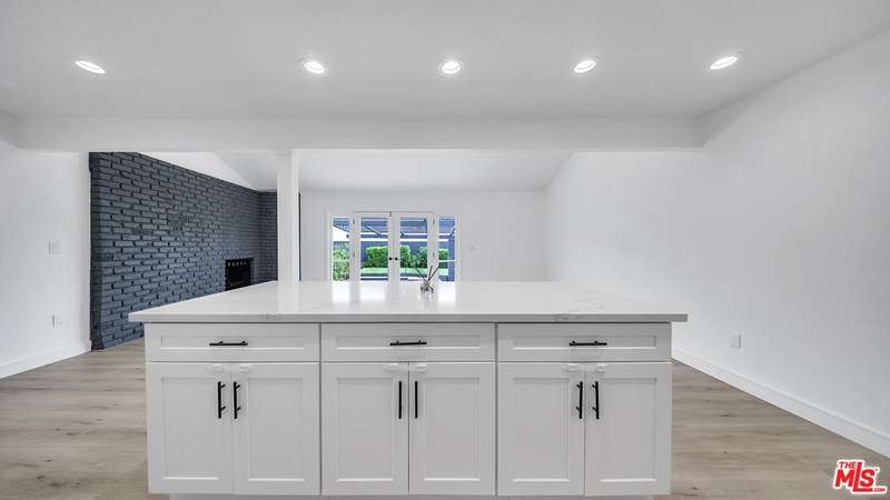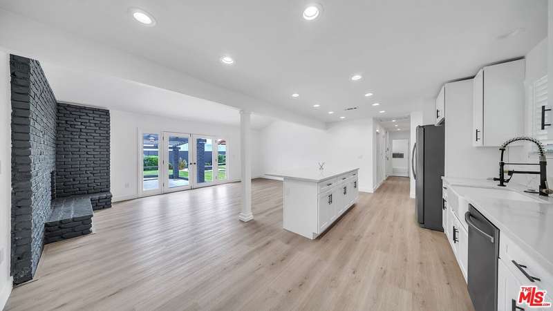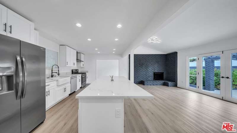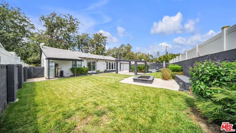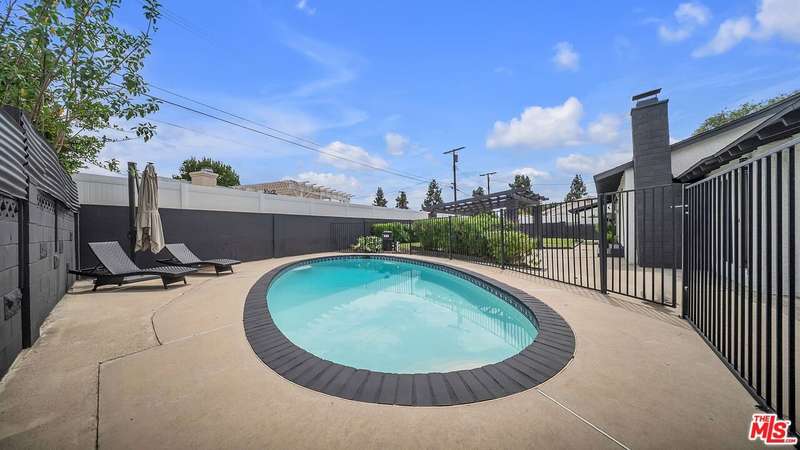 Remodeled Single-Story POOL HOME with Modern Finishes! This beautifully reimagined 3-bedroom home with the option to convert a 4th bedroom or office. Set behind a private automatic gate, the property greets you with a sleek modern entry and a striking front door. Step inside to an open-concept floor plan filled with natural light, vaulted ceilings, and designer details throughout. The chef's kitchen boasts quartz countertops, an oversized farmhouse sink, brand-new stainless steel appliances, and seamless flow into the living room with a charming brick fireplace and French doors leading to the backyard. The spacious primary suite features direct access to the yard, a walk-in closet, and a spa-like bathroom with dual vanities, backlit mirrors, and a stunning floor-to-ceiling tiled shower. Two additional bedrooms share an updated full bath with tub. A laundry closet and flexible bonus space offer the perfect setup for a 4th bedroom, office, or playroom. Outside, enjoy a private backyard retreat with a fenced pool, pergola, grassy play area, and a fully updated 2-car garage. Conveniently located near shopping, dining, and top-rated Granada Hills Charter High School! Turnkey, stylish, and ready to move in!