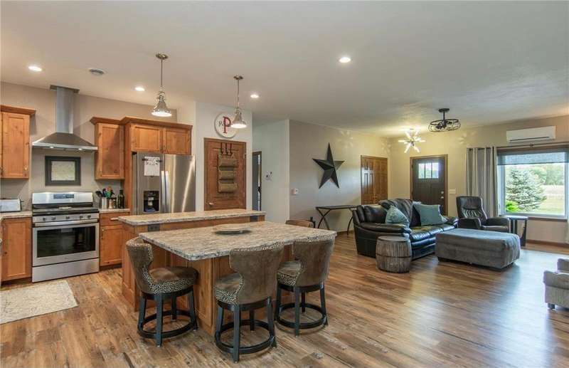 Newer Amish-Built Home on 3.5+ Acres in the Heart of the Brainerd Lakes Area! This beautifully crafted, stick-built home offers 3 spacious bedrooms, 2 bathrooms, and in-floor heat throughout. The custom Alder kitchen cabinetry by Crow Wing Cabinets anchors a thoughtfully designed kitchen and laundry area with built-in counter/table space. Enjoy waterproof Lifeproof laminate plank flooring, 36” wide doors, and a durable monolithic slab foundation. Maintenance-free siding and roofing make this home truly move-in ready. Relax on the covered front patio or entertain on the private rear patio. All nestled on a peaceful, wooded lot just minutes from lakes, trails, and town amenities. Note: This is a new lot split — taxes reflect an estimate per CWC.