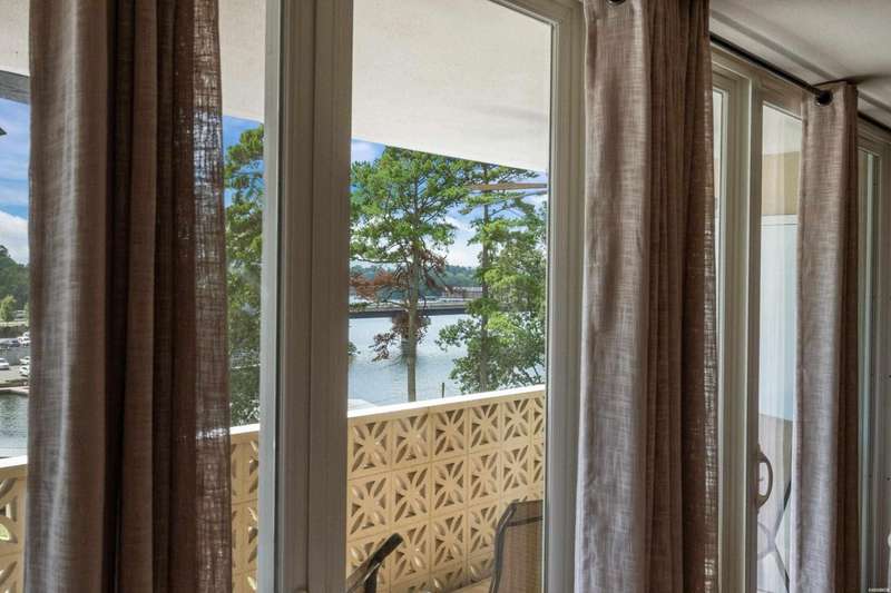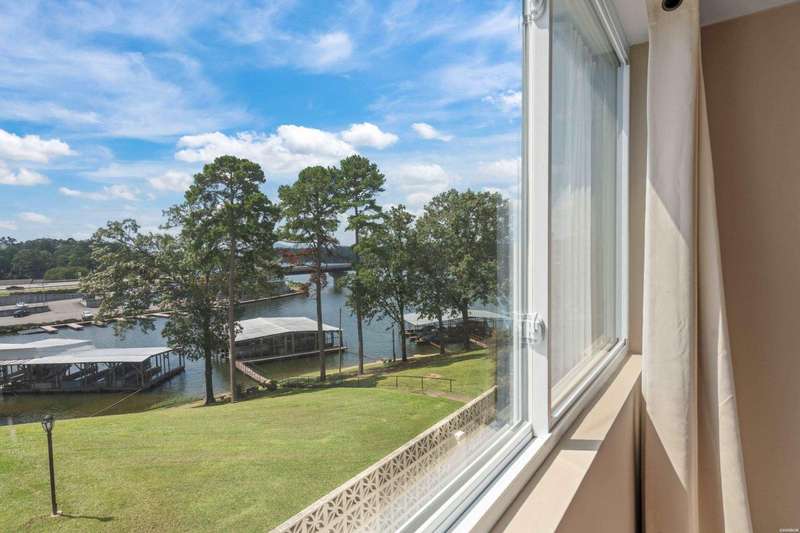 Perfect turn-key lake condo with EVERYTHING! This 'larger than most (1390 sf) tastefully decorated Lake Hamilton condo (comes furnished) has 2 spacious bedrooms located on opposite sides, as well as 2 other additional rooms. One could be used as an office while the other currently has bunk beds. A custom designed floor plan, 2 newly remodeled bathrooms, and large private patio add to the beauty, privacy and spacious feel. This condo is loaded with extra features?new combination washer & dryer, lovely real hardwood flooring, upgraded windows, and 2 COVERED parking spaces. Beacon Manor owners enjoy exquisite gated grounds, a large pool, family room, tennis and pickleball courts, barbeque grills, elevators for easy entrance and electronic security building access. The prime location is close to town and has a wonderful view of the lake's main channel. Short term rentals are allowed for potential extra income. This condo has extra sleeping areas (sleeper sofa in living room) and could be an excellent short term rental investment. Large covered boat slip with lift (and party barge) are available separately.