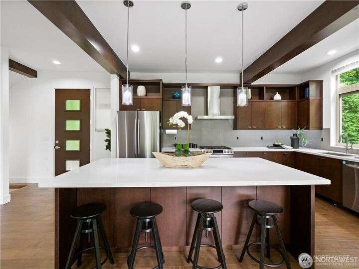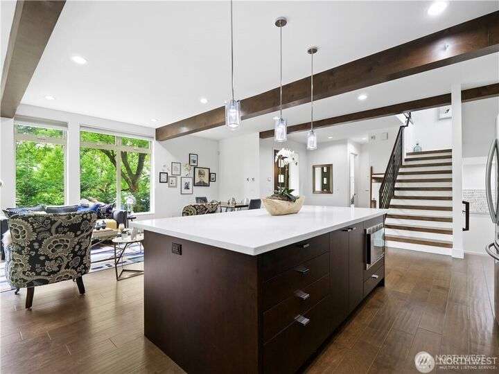 Available Now! Lovely and Modern 4BR home in the heart of the Central District. Open design for the living areas & chef’s kitchen --- enormous quartz island, SS appliances, stylish cabinets and great lighting --- with lovely large windows and high ceilings. Main floor also features large bedroom and 3/4-bathroom. Top Floor: Primary bedroom and spacious 5-piece bathroom suite, additional bedroom, full bath, full-sized W/D. SPECIAL FEATURE: Separate-entry 1-BR, mother-in-law unit, with 2nd kitchen, full bath & W/D on bottom floor. Large wrap-around deck. Low maintenance yard. 2-car garage. Close to Light Rail, Judkin’s Park, and a multitude of restaurants and shops. Sorry, No Pets.