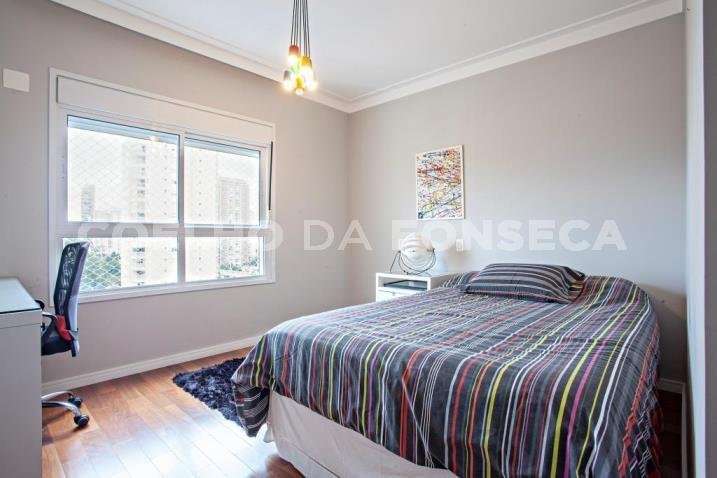 Apartamento lindo com planta bem distribuida, living integrado a varanda gourmet com churrasqueira e forno de pizza. Sala íntima e mais três suítes sendo a master com closet e banheiro com jacuzzi e pia dupla. Planejados em todas as suites mais cozinha e área de serviço. Ar condicionado e projeto luminotécnico em todos os ambientes. Condomínio clube, valorizado, com duas piscina sendo uma coberta, espaço gourmet com churrasqueira, fitness, brinquedoteca e parquinho, quadra e espaço dog. Rua tranquila e arborizada no Brooklin
