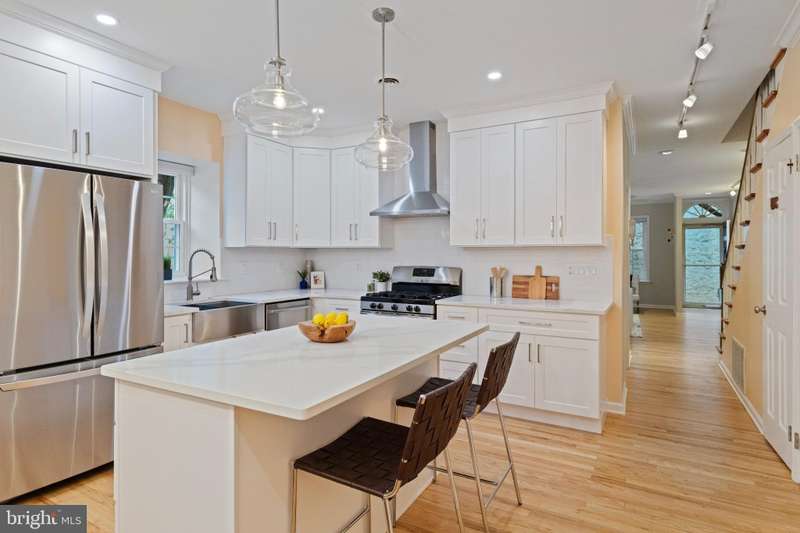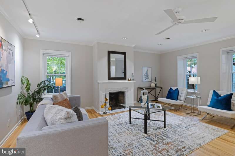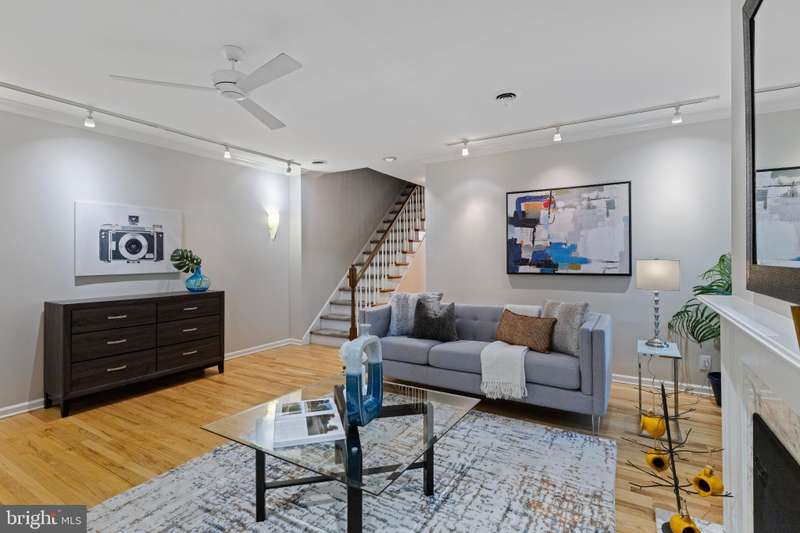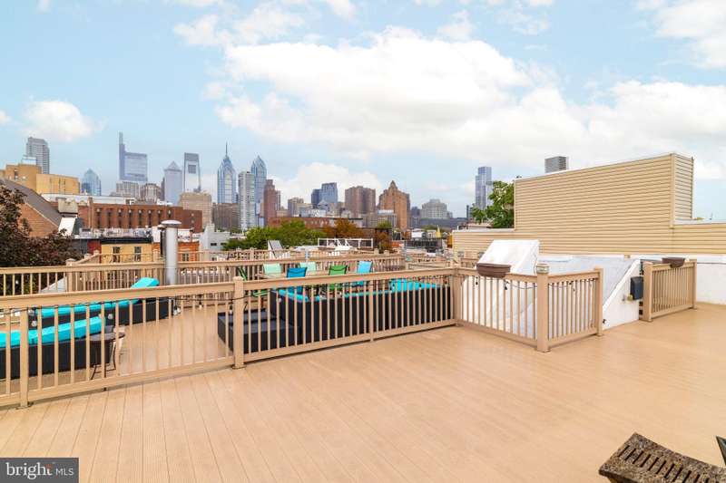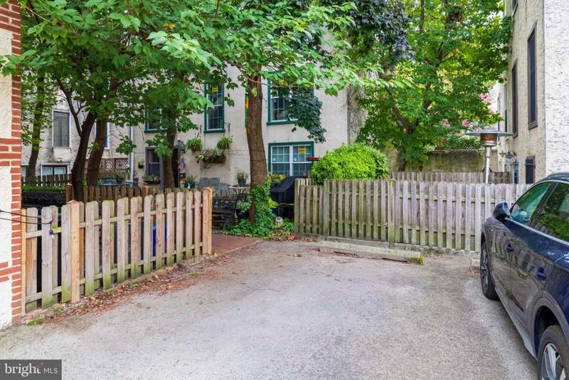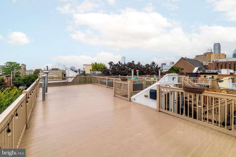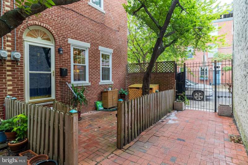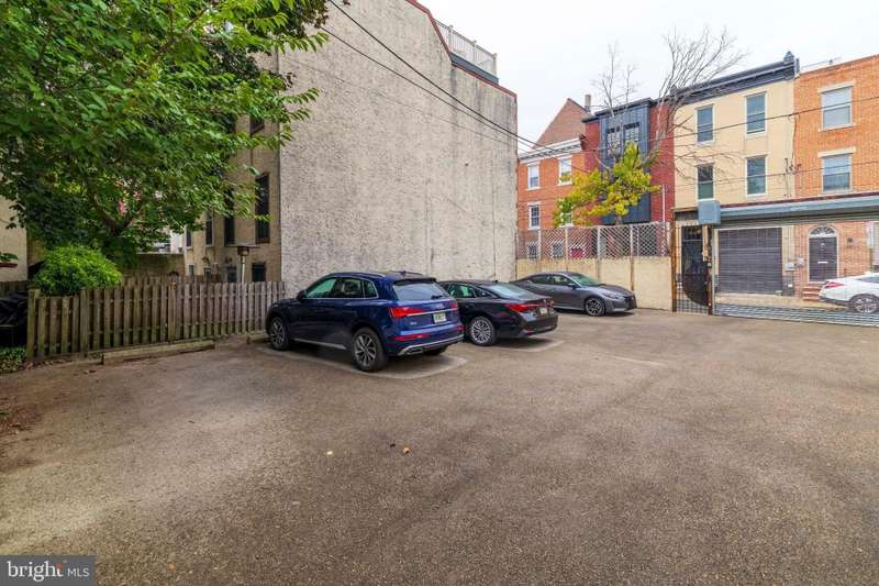 Timeless elegance awaits at 1811 Fitzwater Street, Unit E, a 20-foot-wide corner townhome tucked in a private courtyard in the heart of Graduate Hospital. This classic Philadelphia home blends charm and modern amenities, including gated parking and a massive roof deck with skyline views. The light-filled living room features refinished oak hardwood floors, a marble-mantel fireplace, and crown molding. The open kitchen shines with white shaker cabinetry, quartz countertops, stainless steel appliances, a farmhouse sink, and a center island, flowing into a dining area with a modern chandelier. A walk-in pantry, powder room, and full utility/laundry room complete the main floor. Upstairs, find three bedrooms and two renovated baths. The spacious primary suite offers hardwood floors, a wall of closets, a walk-in closet and a modern master bathroom with walk-in shower. Two secondary bedrooms include hardwood floors, large windows and access to a stylish hall bath. The largest secondary bedroom features a stately marble mantel fireplace. Additional highlights: a semi-finished basement perfect for office or gym, ample storage, a brick-paved front patio, secluded from the street, and secure parking with Pemberton St. access. Steps from local favorites like Loco Pez, L'anima, Pub & Kitchen, La Sera, Sabrina's, Sonny's and much more.