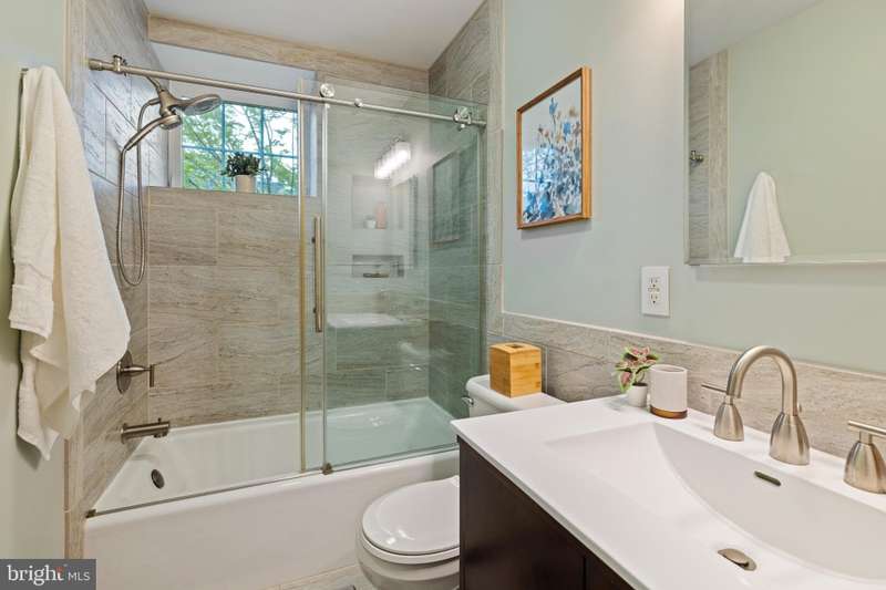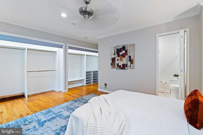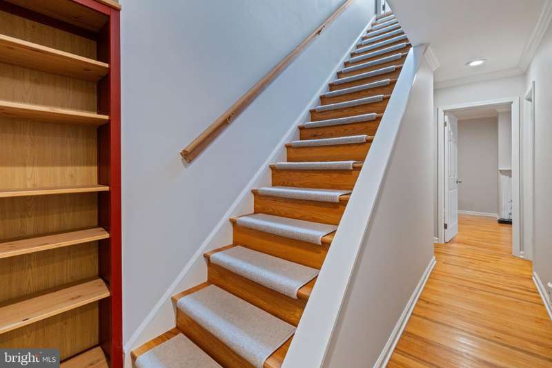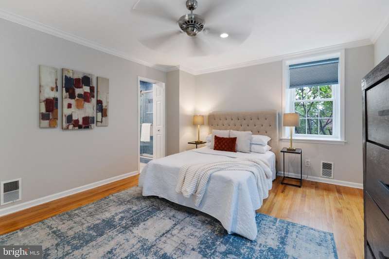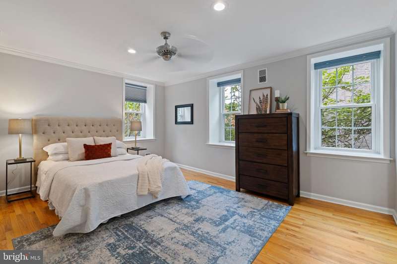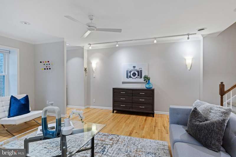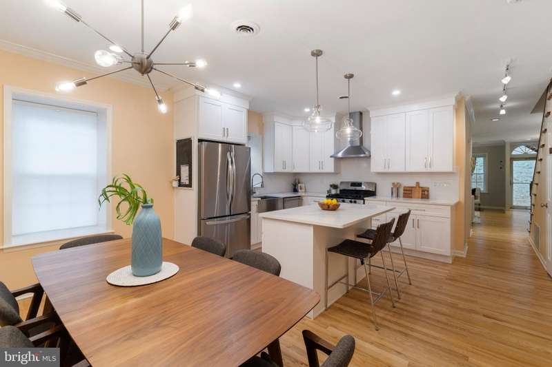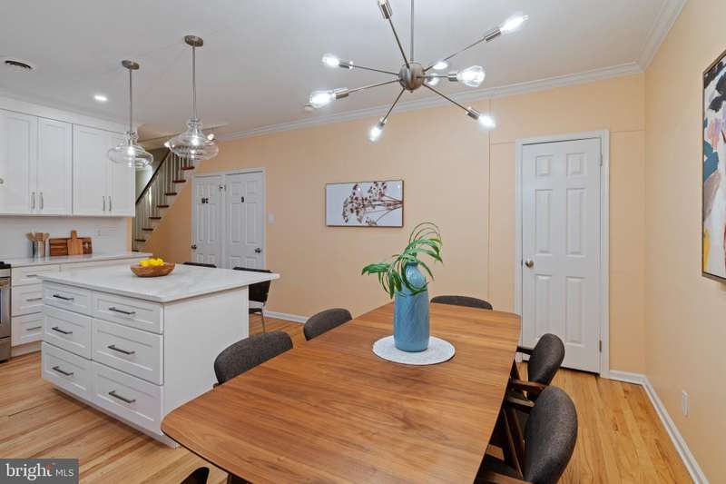Timeless elegance awaits at 1811 Fitzwater Street, Unit E, a 20-foot-wide corner townhome tucked in a private courtyard in the heart of Graduate Hospital. This classic Philadelphia home blends charm and modern amenities, including gated parking and a massive roof deck with skyline views. The light-filled living room features refinished oak hardwood floors, a marble-mantel fireplace, and crown molding. The open kitchen shines with white shaker cabinetry, quartz countertops, stainless steel appliances, a farmhouse sink, and a center island, flowing into a dining area with a modern chandelier. A walk-in pantry, powder room, and full utility/laundry room complete the main floor. Upstairs, find three bedrooms and two renovated baths. The spacious primary suite offers hardwood floors, a wall of closets, a walk-in closet and a modern master bathroom with walk-in shower. Two secondary bedrooms include hardwood floors, large windows and access to a stylish hall bath. The largest secondary bedroom features a stately marble mantel fireplace. Additional highlights: a semi-finished basement perfect for office or gym, ample storage, a brick-paved front patio, secluded from the street, and secure parking with Pemberton St. access. Steps from local favorites like Loco Pez, L'anima, Pub & Kitchen, La Sera, Sabrina's, Sonny's and much more.