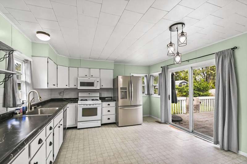 This four bedroom, two bathroom home sits on a double lot with room to spread out. Recent updates include a new roof (sept 2025), new furnace (2023) and brand new water heater (2025), plus the chimney has been professionally removed. You'll love the Large kitchen that steps out to the deck and partially fenced yard. Bring the pets and the kids. The home has versatility with a main floor bedroom , main floor laundry and a full bath (updated). Upstairs you'll find three nice sized bedrooms and a full bath. The two-car garage has extra space that could work for storage or hobbies. There are ac window units included, but even better is the whole house fan which can be super effective at cooling down the whole house in 30 minutes. Ready for new owners - come take a look!