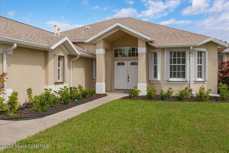 Enjoy Florida living in this 3 bedroom 2 bath corner -lot home with sweeping water views . Bright and inviting ,the open layout features tile in the main areas and warm wood floors in the bedrooms . The primary suite is a private retreat with a Jacuzzi tub, step in shower ,double vanity and a walk-in closet. The kitchen with granite countertops and crisp white appliances flows easily for everyday living and entertaining . Sliders from the living room and guest suite lead to a screened patio overlooking tranquil water , perfect for morning coffeee or evening sunsets . A third bedroom offers flexibility as an office , with a new roof (2022) and a two car garage , this home blends comfort and peace of mind . HOA amenities include clubhouse ,pool ,gym, tennis and full lawn and sprinkler care -resort style living every day