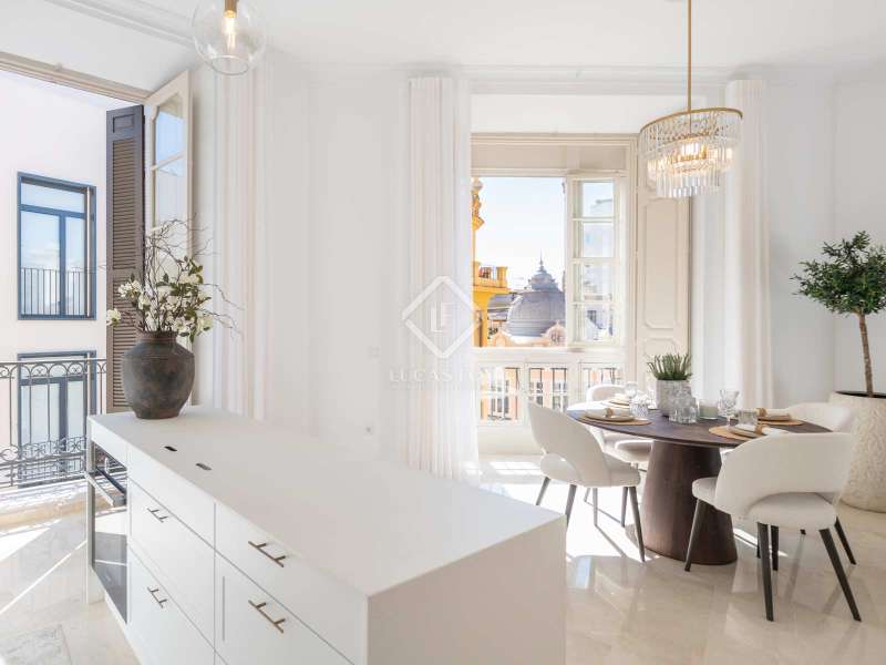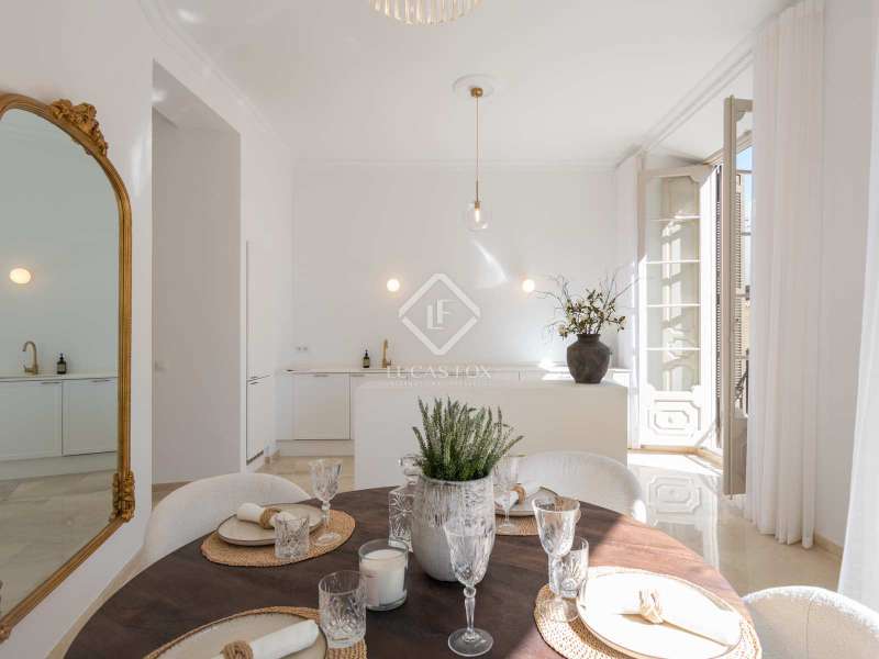 The apartment serves as one of the most pristine examples of the work of the renowned architect Geronimo Cuervo. The architectural brilliance is evident in its high ceilings, expansive windows, and five charming Juliette balconies. Adding to its grandeur is a beautiful stairwell adorned with intricate carvings and exquisite metalwork, showcasing the timeless elegance of Cuervo's designs. Recently, the property has undergone a complete transformation, remodelled and reimagined to fit the needs of the modern dweller without losing its historical charm. It now boasts a fluid open-plan kitchen equipped with a functional island, and impeccably fashioned living spaces that exude warmth and comfort. The home comprises two generously-sized bedrooms along with a resplendent living room featuring an integrated kitchen. Additionally, there is an extra nook that is perfect for setting up an office or a study, offering functional space for those who seek the extraordinary. A lavish bathroom with high-end fittings completes this unparalleled living experience. However, this property is far more than just a dwelling. It is intricately woven into the rich tapestry of Malaga's history. The building, a protected marvel of architectural splendour, stands as a living tribute to Gerónimo Cuervo's genius, the creative mastermind behind the iconic Teatro Cervantes, whose elegant craftsmanship is seen throughout this home. Please contact us for further information and to arrange a viewing.