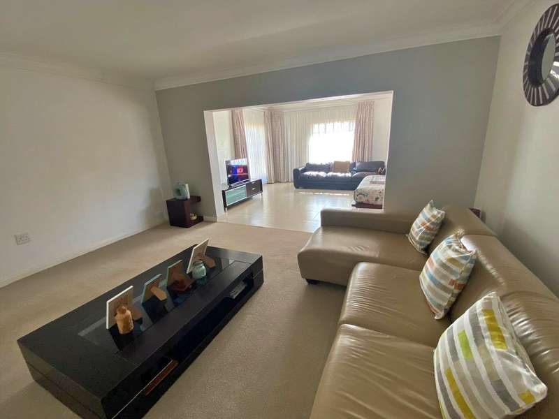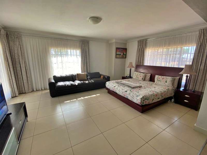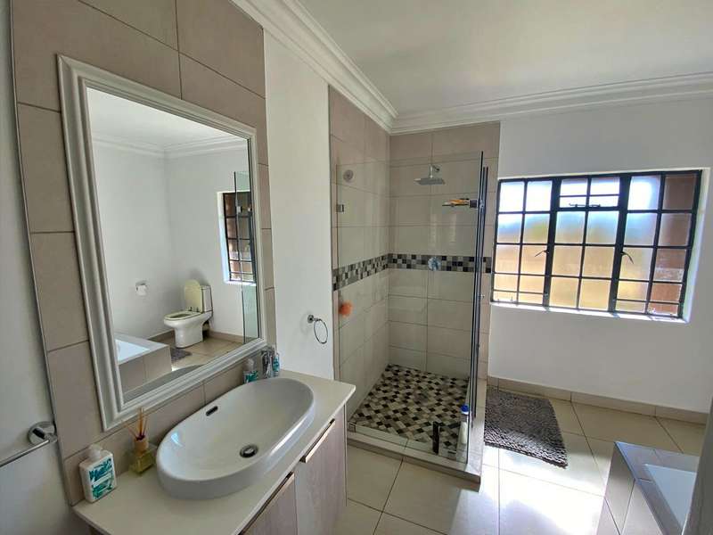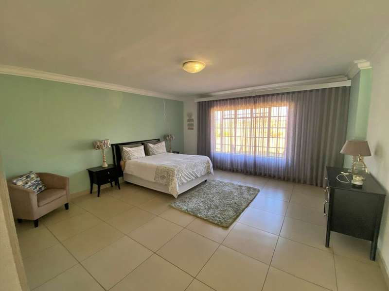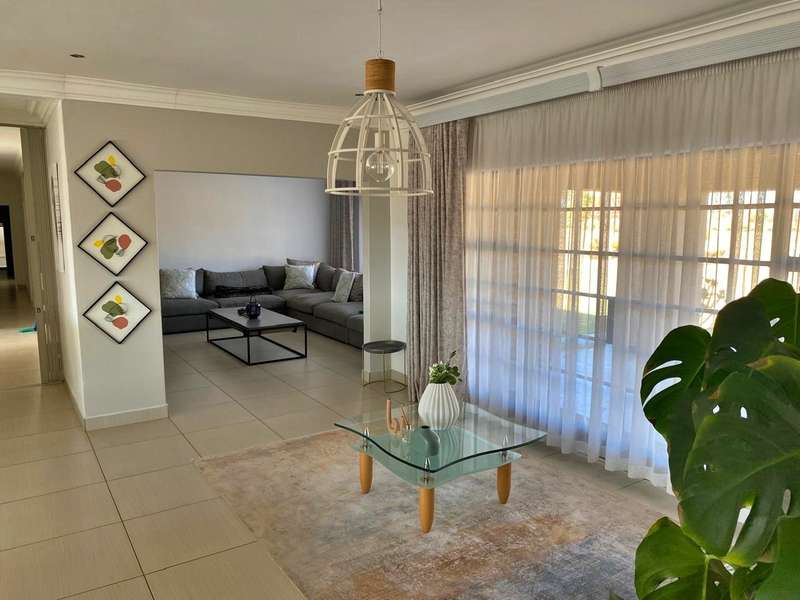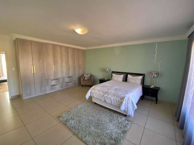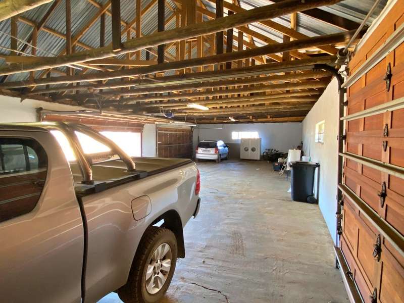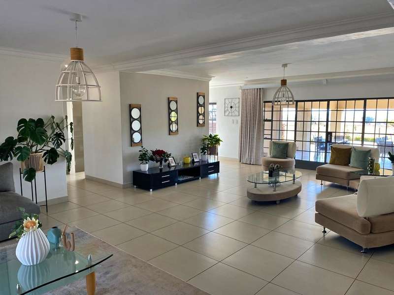 FIT FOR A KING. As you enter this masterpiece you enter with a large reception area into a property that offers expansive living areas, generously sized rooms, and ample garage space, ensuring comfort and convenience for all your needs. Extremely neat residence with very high-quality finishes. Dwelling consists of two lounges, a TV room, a family room, a very modern kitchen with pantry, scullery and laundry. A large stoep next to a sparkling pool gives you an expansive undisturbed view to the North. Five bedrooms and four bathrooms, a walk-in cupboard, with study and six garages with a 10-Kilowatt Solar system with 16x 450-Watt solar panels and three 3.7-watt Lithium-Ion batteries. Water is supplied by borehole. You also have a three-bedroom staff cottage with bathroom and kitchen. ALL buildings, about 2,5 hectares is electric fence fenced. Also, eight CCTV cameras provide security. Rest of the property is cattle fenced.