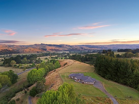 Commanding outstanding panoramic views, this 23-hectare property is graced with an architecturally designed home that boasts many features and is finished to the highest standard. Located less than 5 minutes from Ashhurst and within 20 minutes of both Feilding and Palmerston North, the property offers the perfect escape from the hustle and bustle of city life. Set on an elevated site, the tree-lined, fully sealed driveway winds up to the home, where your worries are left behind as you approach. The hub of the home is the large entertainer's kitchen with a walk-in pantry, complemented by three dining/living areas that all open to the north, providing excellent indoor-outdoor flow and alfresco living. The southern wing includes three double bedrooms, a main bathroom, and internal access to the three-car garage. The northern wing features two bedrooms, with the master having an ensuite and walk-in robe, a separate toilet, and second internal access to a single-car garage. The home is fully insulated, double-glazed, and heated with a ducted heating system, underfloor heating, and a wood burner. A meandering stream provides a lovely ambiance to the land, which is a mix of productive flats and easy hill country. An excellent set of stockyards and a reliable water supply service the property. This is a forever property - one you will not want to leave once you are here. As such, this may well be your only chance to make it your home. Don't miss this opportunity, call today to view.