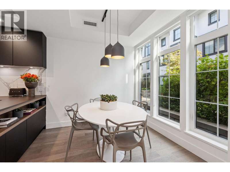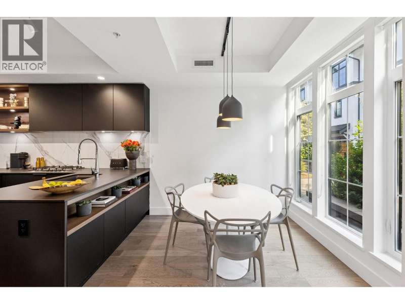 The corner townhome you´ve been waiting for! Flooded with southwest light, this perfectly positioned home is wrapped in oversized windows and anchored by a spacious west-facing terrace with gas hookup-ideal for BBQs and entertaining. The signature CresseyKitchenTM boasts ample storage, Dekton counters, an integrated appliance package, and a 5-burner gas cooktop. Hardwood floors run throughout, complemented by large-format spa-inspired baths. This rare 4-bedroom layout offers 3 walk-in closets, a massive private storage room, heat-pump A/C, and 2 EV-ready parking stalls. Mason by award-winning Cressey is an intimate, European-inspired collection in Lions Gate Village, celebrated for its family-friendly layouts and timeless quality. An elevated North Shore lifestyle-turn-key, bright, and beautifully quiet. With easy access to Downtown, steps to the best trails and parks, Park Royal shopping & dining, Ambleside Village & recreation centre; easily the best location in North Van. Open House Saturday 2-4PM (id:58403)