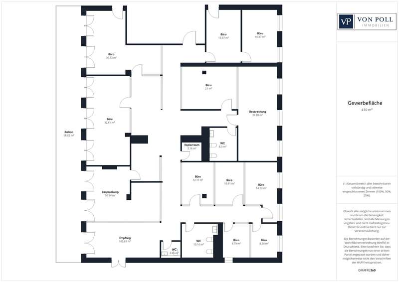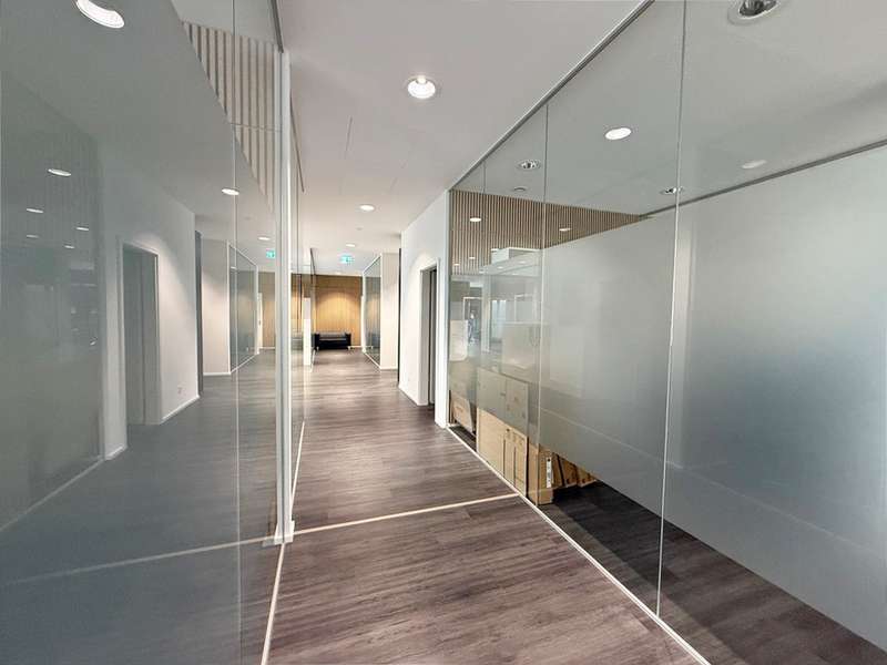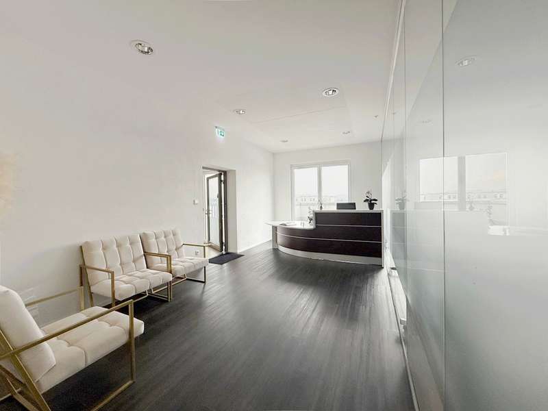 This high-quality office unit extends over the 2nd and 3rd floors of a well-kept building and offers a total of approx. 627 m², which can be flexibly arranged. The 3rd floor comprises approx. 410 m² and has 10 offices and 2 meeting rooms that can be used individually. A special highlight is the attractive roof terrace, which is ideal as a break and relaxation area or for smaller company events. The 2nd floor offers a further approx. 216 m², which can either be used separately or integrated as additional office or meeting rooms. This flexibility makes the space ideal for growing companies or separate teams. The office unit boasts high-quality furnishings that create an efficient and pleasant working environment. The clear room height is a generous 3.00 m, and approx. 2.60 m in some areas, such as the sanitary facilities. The triple-glazed windows with external blinds ensure pleasant light regulation and high energy efficiency. White CPL interior doors and elegant glass doors in the glass walls emphasize the modern and light-flooded design of the rooms. Parking spaces can be rented for €50 per month. See this prestigious office space for yourself and arrange a viewing appointment. We look forward to your inquiry!