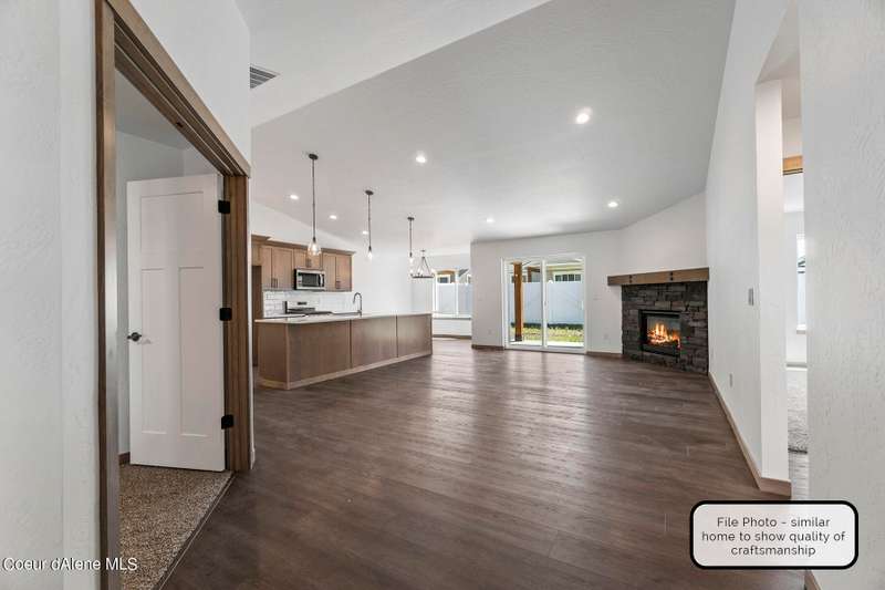 Beautiful accented homes with vaulted great room ceilings per plan, easy care luxury vinyl plank flooring thru out great room and wet areas, crawl spaces, shaker style Huntwood cabinets, insulated garage doors with windows in top grid, garage door opener and keypad, fiber cement lap siding, exterior wainscot and gable siding accents, 95% efficient gas forced air furnace, tankless water heater, nest thermostat, front yard landscaping and sprinkler system, and much more!