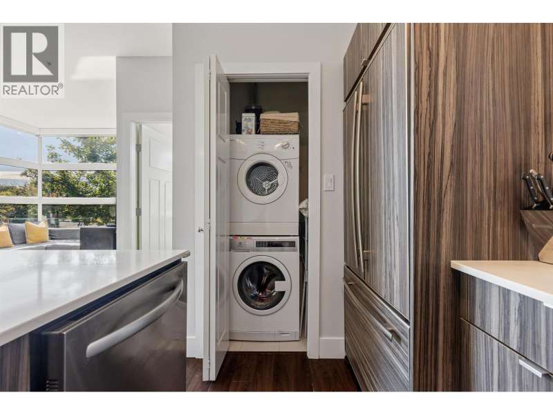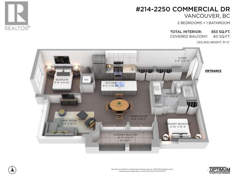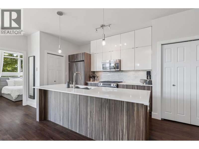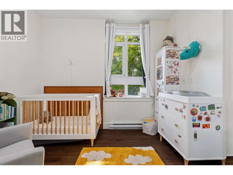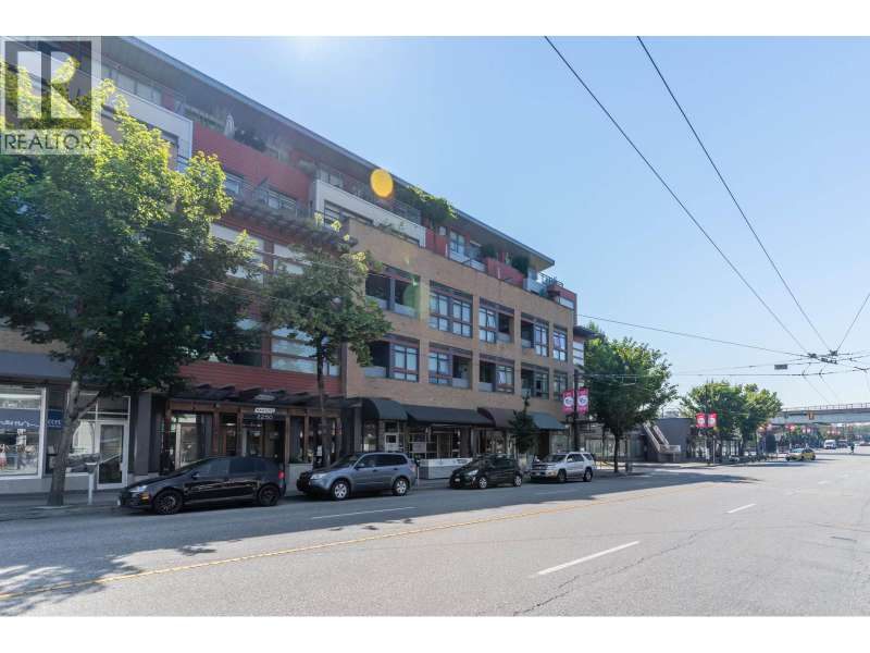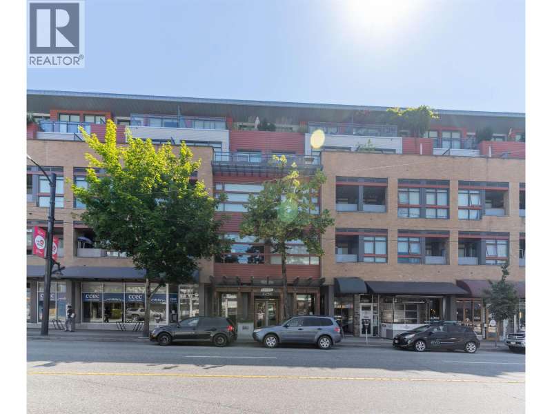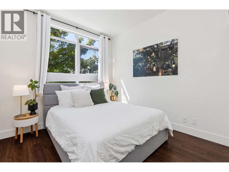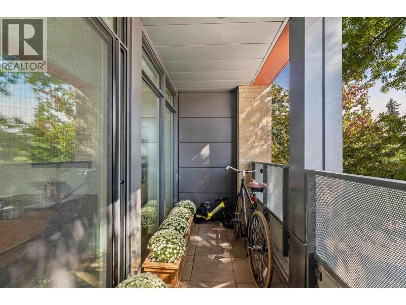 RARE CONCRETE low-rise on the Drive with light, lifestyle, and livability in equal measure. Corner home with 9´ ceilings and a dramatic full-span wall of south & west windows wrapping the living area; no breaks, just all glass and treed outlooks. Automated blinds throughout - bedrooms too! Open-concept plan has great flow: proper dining, large island kitchen with gas range & full-size appliances, & generous living area. Separated bedrooms & an extra-large bathroom with stand-alone soaker tub & shower. Covered 60 SF balcony extends your living. Original owner - never rented. Heat pump installation allowed & EV charging in the garage. Step out to Commercial Drive´s cafés, markets, culture & catch the SkyTrain just a block away. A hip, connected community at your doorstep. (id:58403)