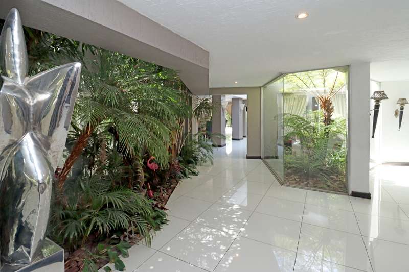 Asking more. Luxury Executive Family Home – A Tranquil Retreat in Prime Location Discover the perfect blend of elegance and comfort in this stunning upmarket family home, designed for modern living and effortless entertaining. 4 Light-Filled Bedrooms with breathtaking garden views in every room. The main suite boasts a private pyjama lounge, dressing room, and spa-like en-suite. 2 Luxurious Bathrooms – Contemporary finishes and spa-inspired design for ultimate relaxation. Private Study – Work from home in a serene setting with garden views. Grand Entrance, seamlessly blending indoor and outdoor spaces, welcoming you into this sophisticated home. Multiple Living Areas consist of 2 Elegant lounges and a spacious dining room, all overlooking a lush, tropical garden. Exquisite Entertainer’s Patio. An expansive, covered space with a built-in server, cupboards, and braai, offering the perfect setting for gatherings while overlooking the sparkling pool and tropical garden. The Designer Gourmet Kitchen is a chef’s dream with top-of-the-line finishes, interleading breakfast room and atrium, enhancing natural light and ambiance. 3 Automated Garages – Secure and convenient parking. Double Staff Accommodation – Ensuring seamless household management. 24-Hour Security – Peace of mind in a secure and prestigious location.