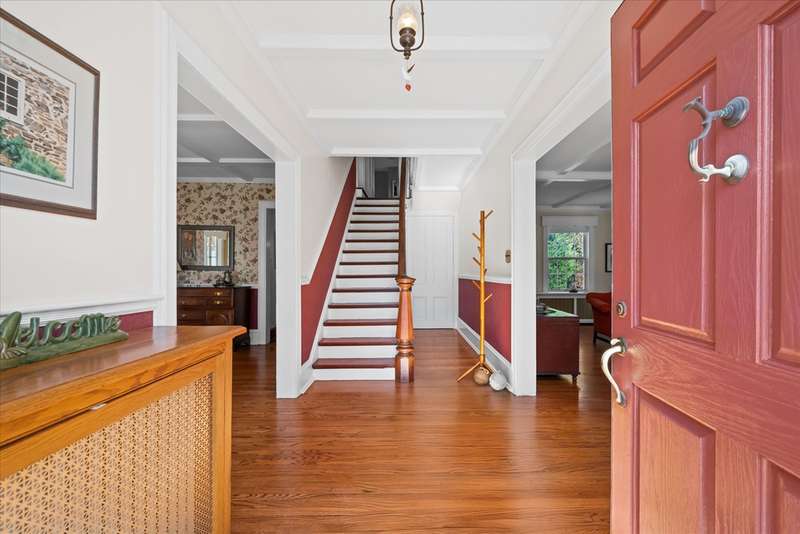 Welcome to this gorgeous and stately 1870's home located in popular Brandywine Hundred. This exquisite 6 bedroom, 4 bathroom home showcases timeless craftsmanship, including 9' ceilings and recently refinished hardwood floors throughout the first and second floors. As you enter, you are greeted by a formal entryway leading into the large living room, complete with coffered ceilings, crown moldings, and a cozy fireplace. The dining room boasts a charming bay window, large window and corner cabinet, perfect for hosting elegant dinner parties. The spacious kitchen boasts an island cooktop, sub zero refrigerator, double ovens, and two skylights flooding the space with natural light. It also features tile backsplash, roll out drawers, and two pantries for ample storage. The adjacent breakfast area has plenty of space for large gatherings and opens to the rear paver, patio walkways. The family room is a warm and inviting space with wood paneling, exposed beams, and another fireplace. French doors lead to a sun porch with upper transom and large crank-out windows, providing a seamless indoor-outdoor living experience. The first floor is completed by a new full bath with tile floors; walls-wheelchair accessible. The second level of the home boasts a large primary bedroom with 3 closets and a full bathroom. This floor also has a convenient second-floor laundry room and three spacious bedrooms and a full bath. The top floor features brand new carpeting, two additional large bedrooms and another full bath. Updates to the property include a 7-year-old roof, 10-year-old mini splits for efficient heating and cooling, a 3-year-old hot water heater, vinyl siding, a new sewage pipe, and a new sump pump. The detached 2-car stone garage offers an unfinished upstairs storage area that could be transformed into a rec room or home office. The exceptional grounds include lovely landscaping, mature trees, paver patio and walkways. Enjoy the grounds while sitting on the front sun room or the side screened porch. This stunning home is truly a must-see with its meticulous attention to detail, modern updates, and charming character throughout. Don't miss out on the opportunity to make this timeless treasure your dream home!