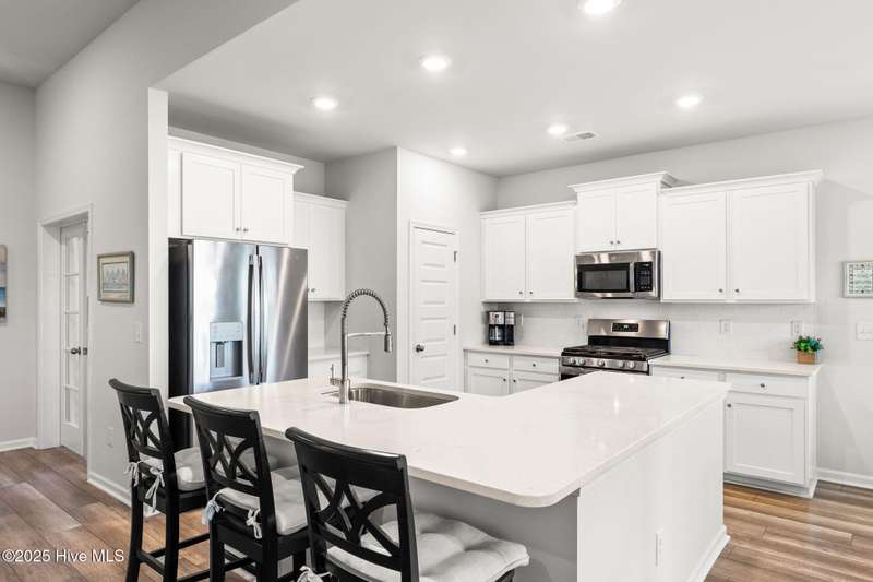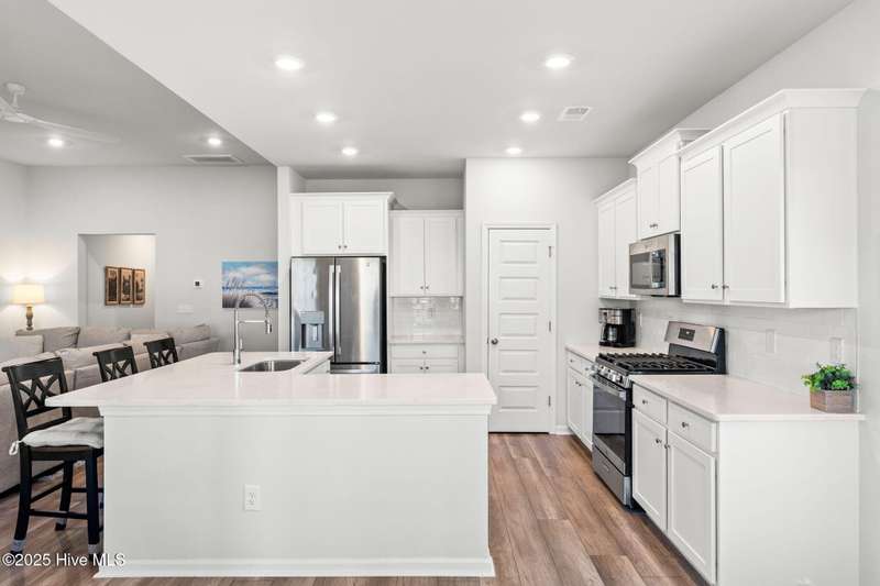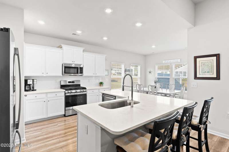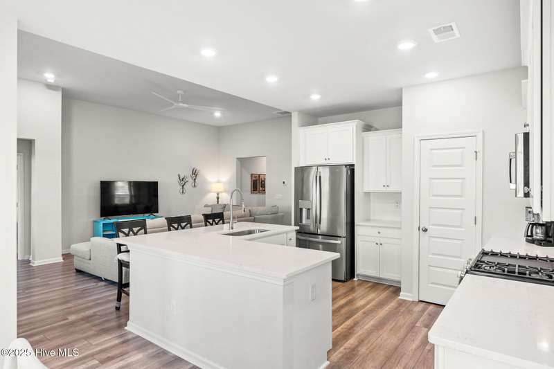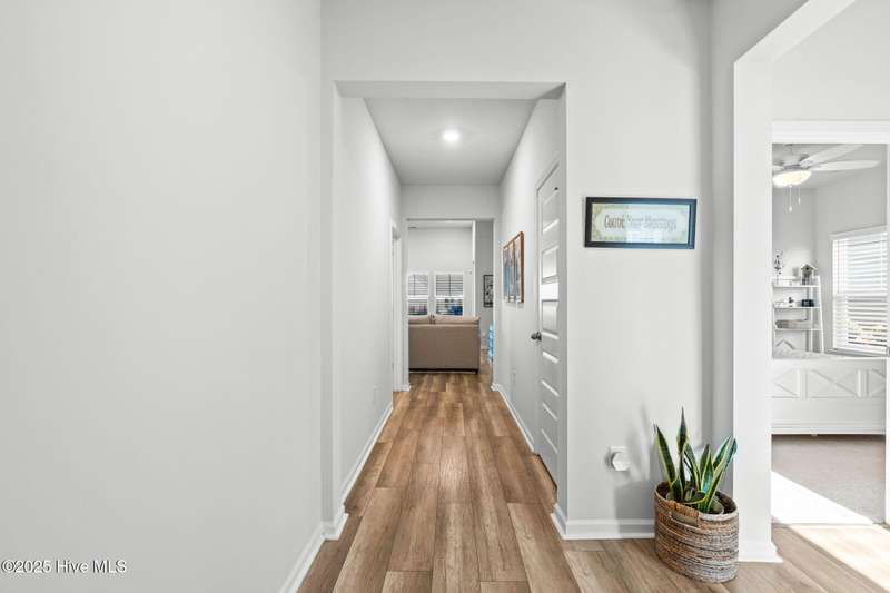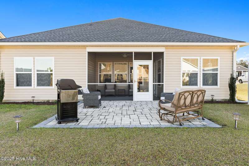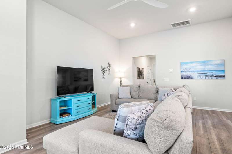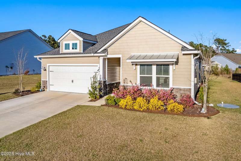Discover the ease of coastal living in this beautiful single-level pristine cottage located in the Cameron Woods community in Ocean Isle Beach. Featuring an open concept design with beautiful laminate and tile flooring, this home offers a spacious living area, lots of windows, high ceilings with abundant natural light, a modern kitchen with quartz countertops and stainless-steel appliances plus a cozy dining space perfect for gatherings.The primary suite boasts a private en-suite bath, trey ceiling, walk-in shower and generous closet space, while two additional bedrooms provide comfort for family or guests. Enjoy outdoor living on the covered screen porch, overlooking a large, oversized manicured yard offering privacy.Cameron Woods offers fantastic amenities, including a clubhouse, swimming pool, fitness center, walking trails, and pickle ball courts- all just minutes from the sandy shores of Ocean Isle Beach, Sunset Beach, close to golf courses, shops and local restaurants. Whether you are looking for a primary residence or a vacation retreat, this home is a perfect blend of comfort and convenience. A must see!