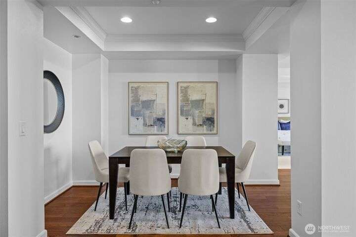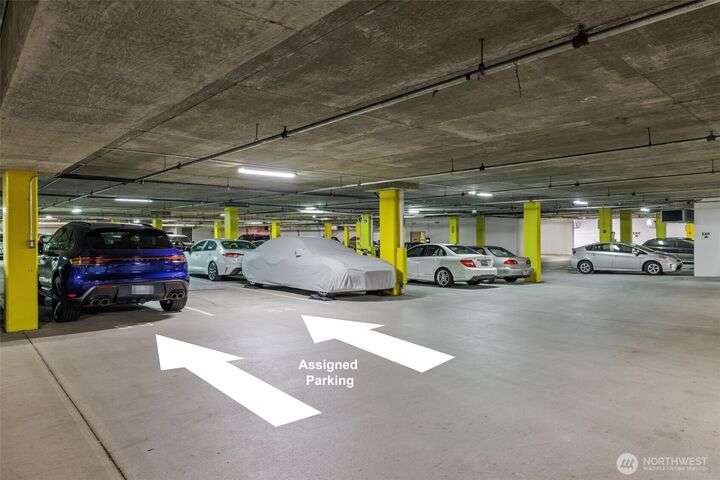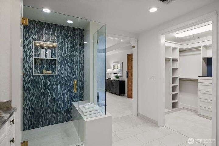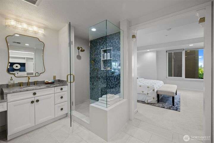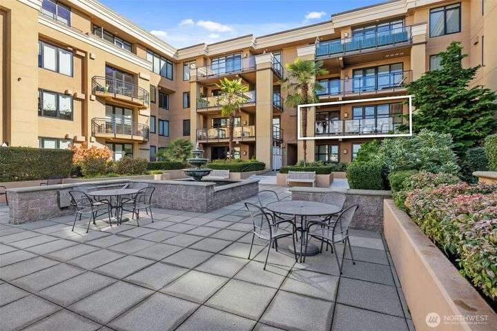 Experience elevated living in this beautifully updated 3BR/1.75BA Astoria condo featuring fresh paint, stylish bathrooms, and thoughtful upgrades— designer tiles, California Closets and Hunter Douglas motorized blinds. The culinary kitchen showcases premium SS appliances, custom detailing, hand-painted tiles, quartz counters and an open layout ideal for entertaining. Floor to ceiling windows fill the space with natural light and frame the courtyard, and peek views of the lake, Seattle skyline & Mtns. Enjoy coffee or sunsets on the spacious deck or cozy up next to the fireplace. Includes 2 secured parking spots, storage unit, concierge, and unbeatable Main Street location—steps to Meydenbauer Bay, parks, boutiques, and dining. Pet-friendly.