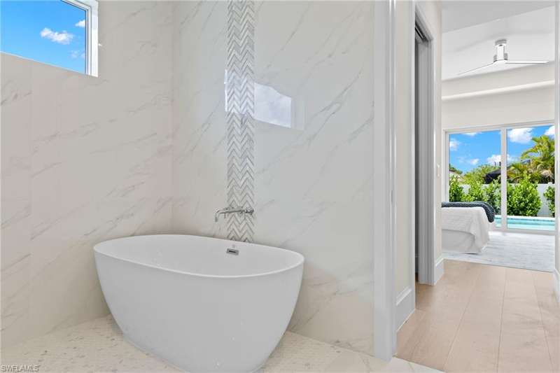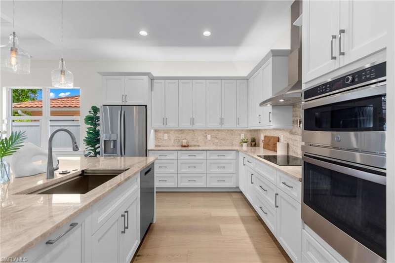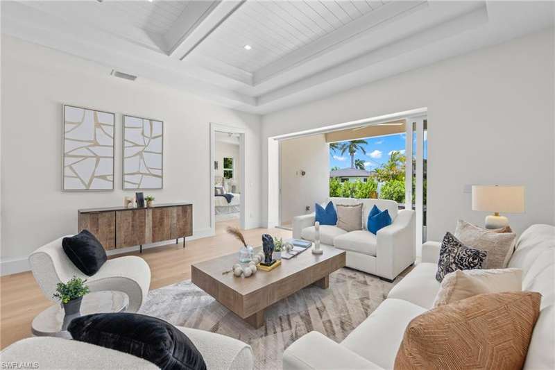 Exciting opportunity for new construction in Naples Park in an X flood zone! MR Square Construction, Inc. presents this spectacular southern exposure, four bedroom, three bathroom, pool home residence that was just completed. This gorgeous home will showcase high-end finishes and upgrades throughout an open concept floor plan; smart home automation, Lutron Caseta lighting system, GE profile appliances, high ceilings, wide plank wood floors, outdoor living area with summer kitchen, resort style pool and spa, hurricane impact doors/windows, security cameras and metal roof. The light and bright kitchen is outfitted with beautiful solid Taj Mahal / quartzite countertops, high end cabinetry, and kitchen aid appliances. The backyard oasis with pool, poured concrete pool deck, spa, and outdoor kitchen showcases the Florida lifestyle at its finest. The conveniently located subdivision of Naples Park is within walking distance to the Mercato, a few minutes to the Waterside Shops, and just a sho
