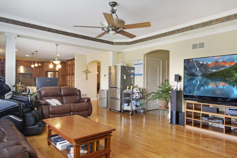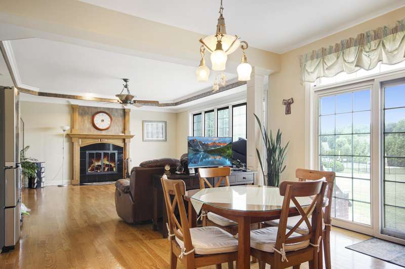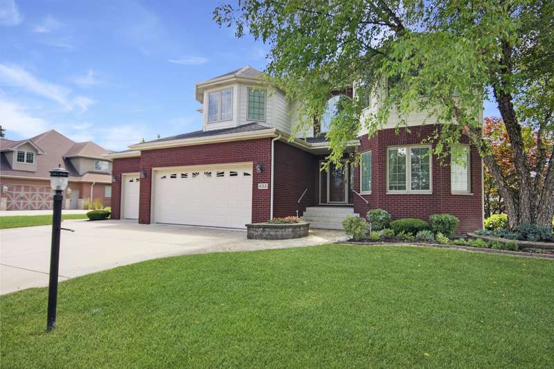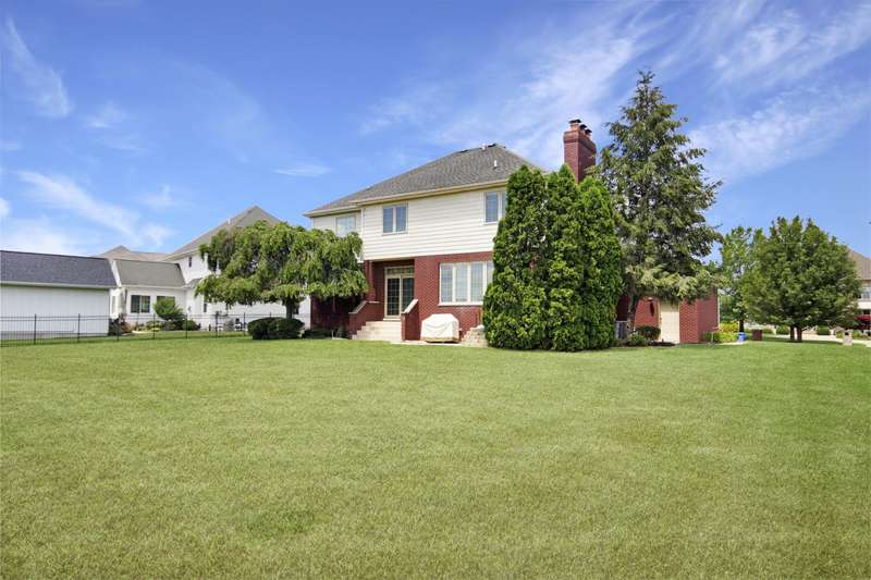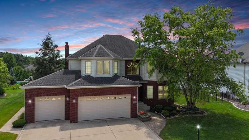 Built in 2006, this former Parade of Homes model showcases timeless design and thoughtful craftsmanship across 4 spacious bedrooms and 2.5 baths. A grand open staircase leads to a dramatic gallery landing, setting the stage for the home's elegant interior.Custom details include arched entryways, architectural columns, intricate hardwood flooring with a medallion and soft cove accent lighting. Soaring ceilings, crown molding, and rich woodwork add warmth and sophistication throughout--even in the full, unfinished basement with 9-foot ceilings and a second fireplace, offering incredible potential.The family room centers around a cozy fireplace, while the gourmet kitchen features granite countertops, stainless steel appliances, abundant cabinetry, and a walk-in pantry.The primary suite is a true retreat, with cathedral ceilings, transom and bay windows, his-and-hers walk-in closets, and a spa-like bath with dual vanities, soaking tub, and separate shower. The three additional bedrooms are generously sized, ideal for family, guests, or a home office.Step outside to a private patio surrounded by professional landscaping. Located in the desirable Feather Rock community, this one-of-a-kind home offers elegance, space, and unmatched charm.