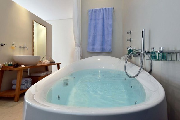 -The 31 sq.m VIP guest room is located at the ground floor of the residence. The guests can spoil themselves in a Queen Sized double bed equipped with Tempur anatomic mattress, the spacious hydromassage bath tab of the open planned en suite bathroom & separate toilet room. Full entertainment on a Bang & Olufsen TV set completes the most relaxing stay.