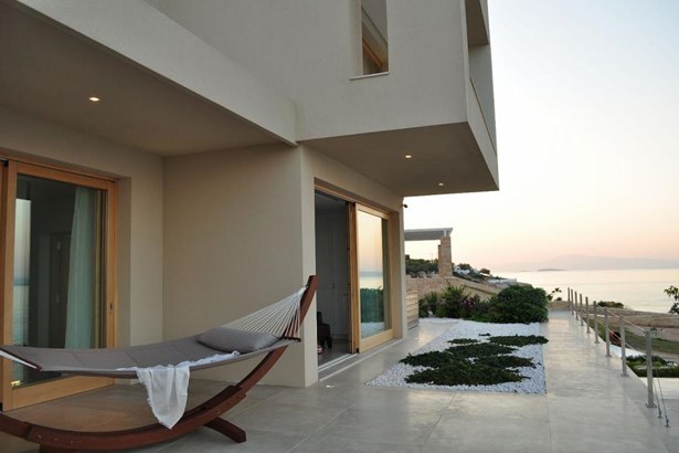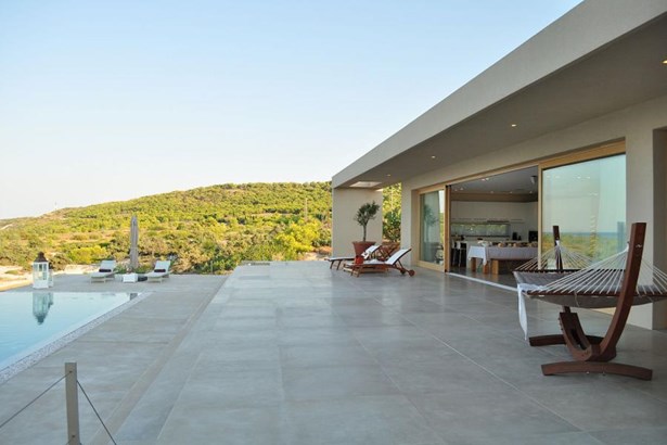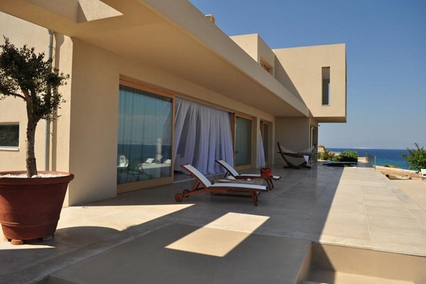 The great continuous opening of 12m create an airy space just 30m fom the beach, were you can relax or have your meal without loosing the unobstructed sea view! The in & out effect created by the open plan spaces, gives guests the feeling of spending your whole day by the sea, on the comfort of the homey environment.