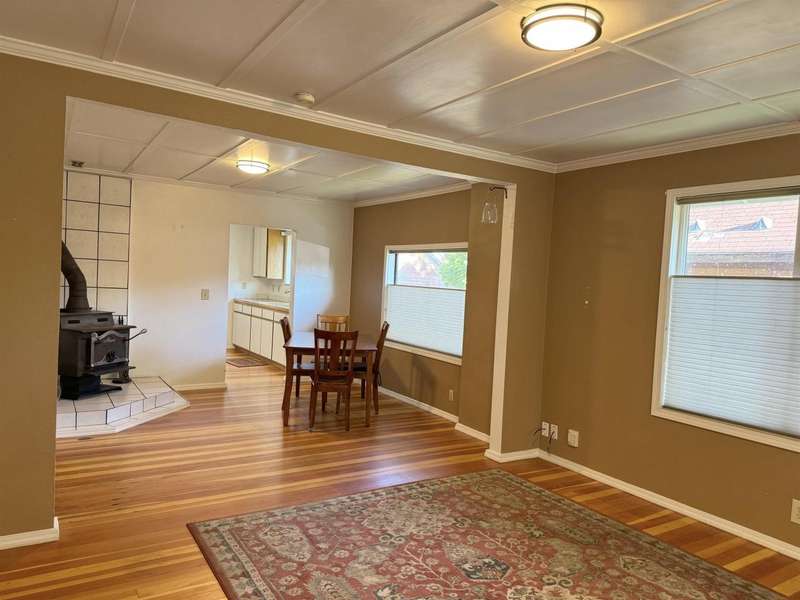 This 3 bedroom 2 bath home is full of charm with upgraded windows and original Doug fir floors. fully fenced back yard with a newer oversized garage. Upstairs features bedroom and full bath. downstairs has a cozy wood stove and fee standing monitor stove for those cold winter nights. Come take a look !