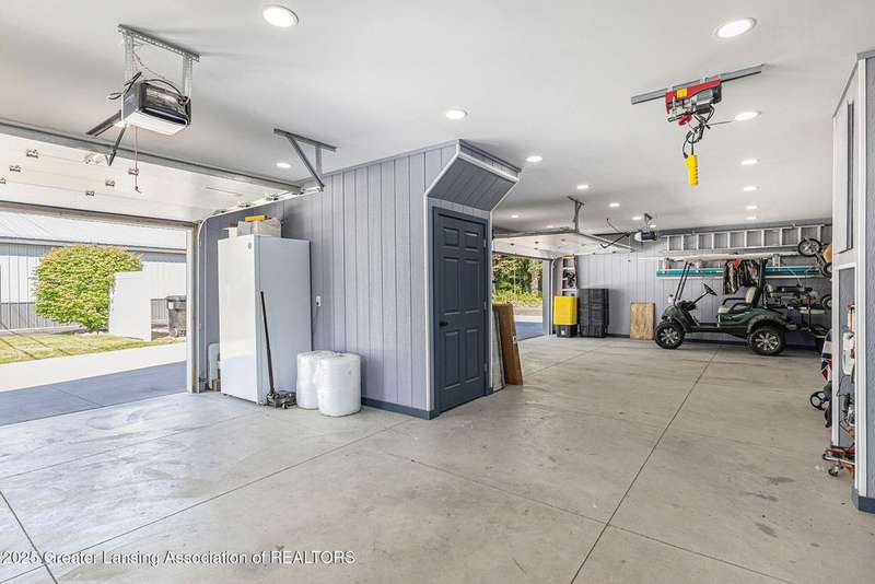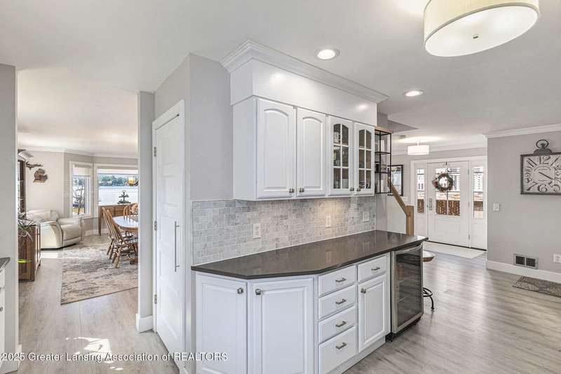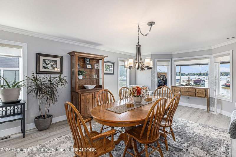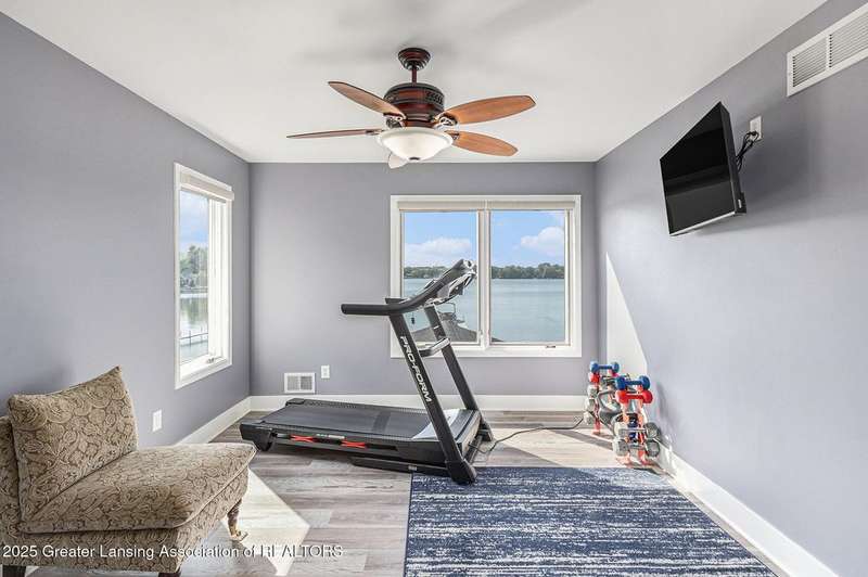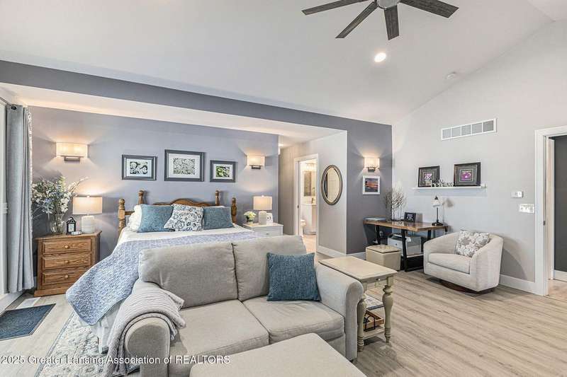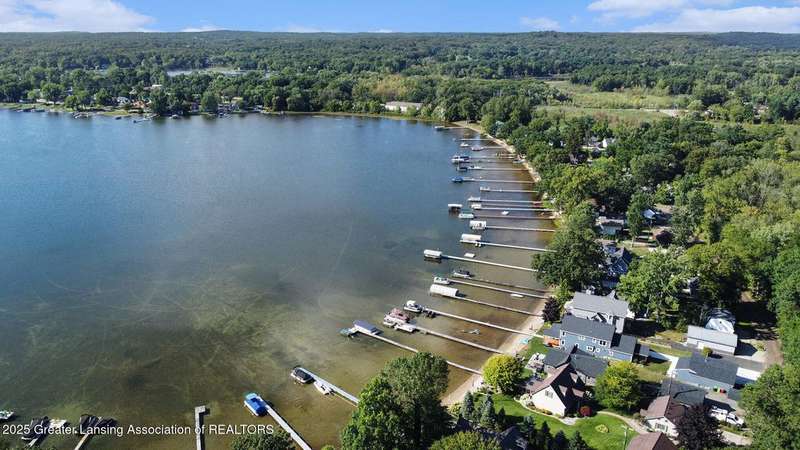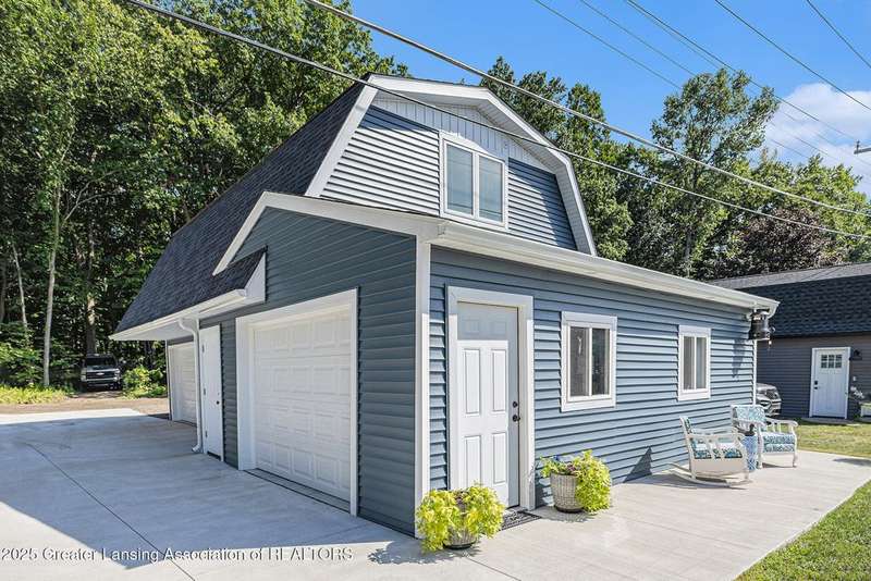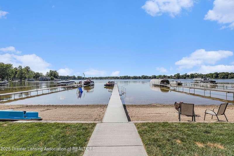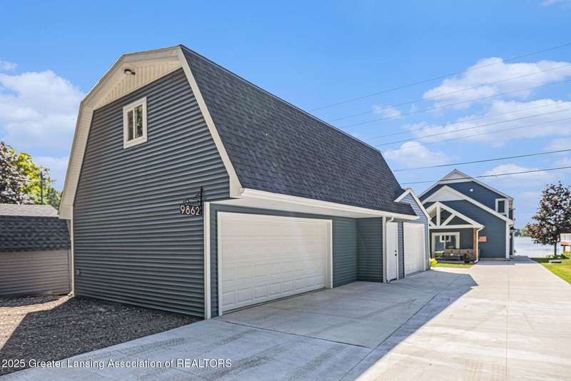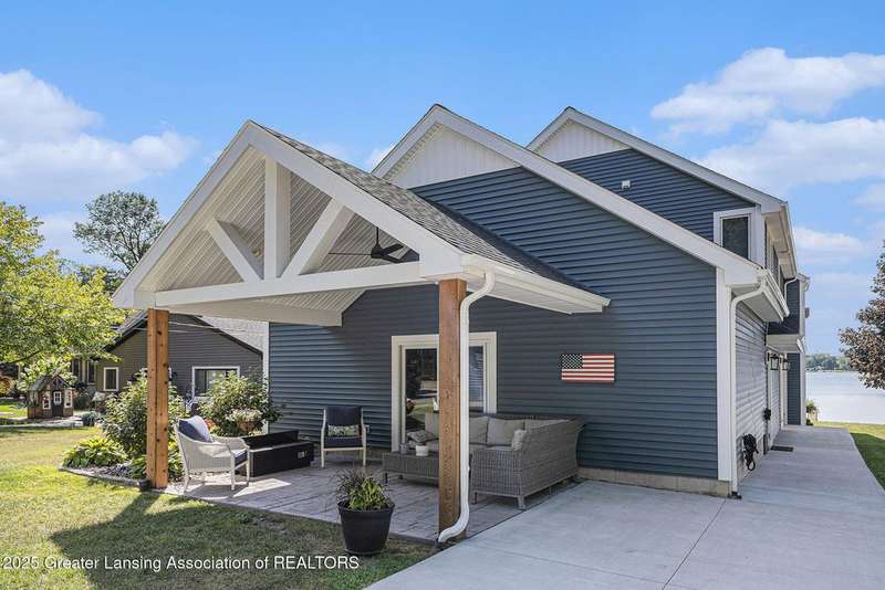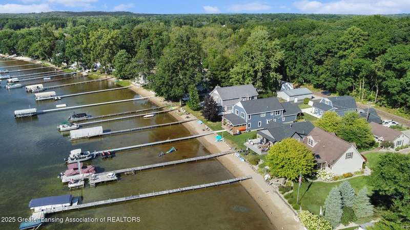 If you've been searching for a one of a kind home on the Huron chain of lakes, this is it! The entire 3,216 sq ft two story home has been professionally and tastefully updated on the exterior and interior. Features 5 bedrooms, 3.5 bathrooms, main floor primary suite is massive with soaring ceilings, a cozy built in fireplace surrounded by shelves, a huge custom built WI closet, large bathroom w/dual sinks, tiled walk-in shower and granite countertops, complete with door to your own private covered concrete patio with recessed lighting & ceiling fan. 2nd floor features remodeled primary suite with fireplace, updated bath with dual sinks,tiled walk in shower, closet and additional laundry area. Three additional spacious bedrooms and a full bath are located on the second level. Gorgeous kitchen with SS appliances and quartz countertops that wraps around to the spacious open dining/living room area facing the lake and new trex deck with recessed lighting & ceiling fans. Three car detached finished, heated garage with stairs to a loft for extra storage. All new concrete drive, (lots of parking) patio space & sidewalk to dock/lake. Within the last few years this home has had all new flooring throughout, a new roof (house & garage), new siding, new two-zoned unit furnace & AC, new water heater, too many upgrades to mention. Basically a brand new home with 49 feet of lake frontage, an outdoor shower convenient for rinsing yourself or your pets after a lake day/swim. Also includes generator that is wired to run the entire house.