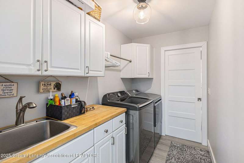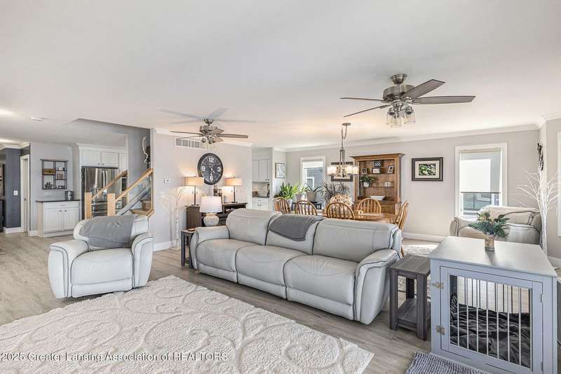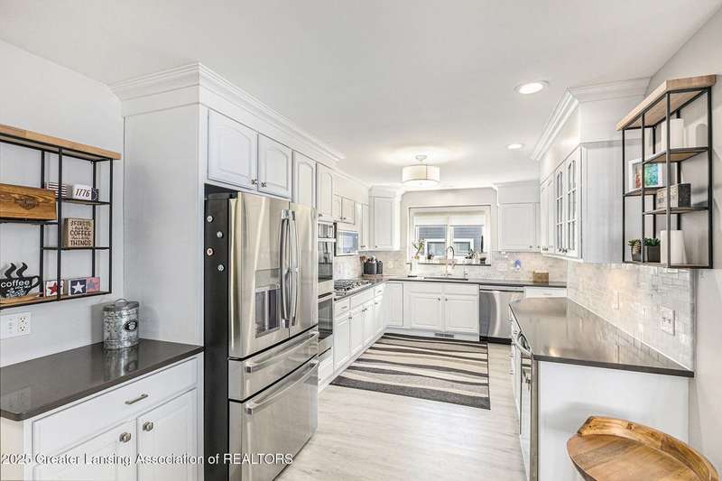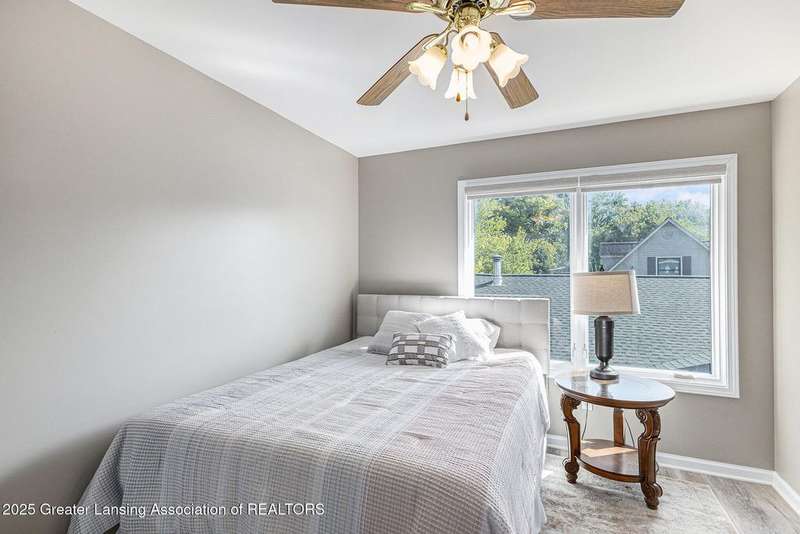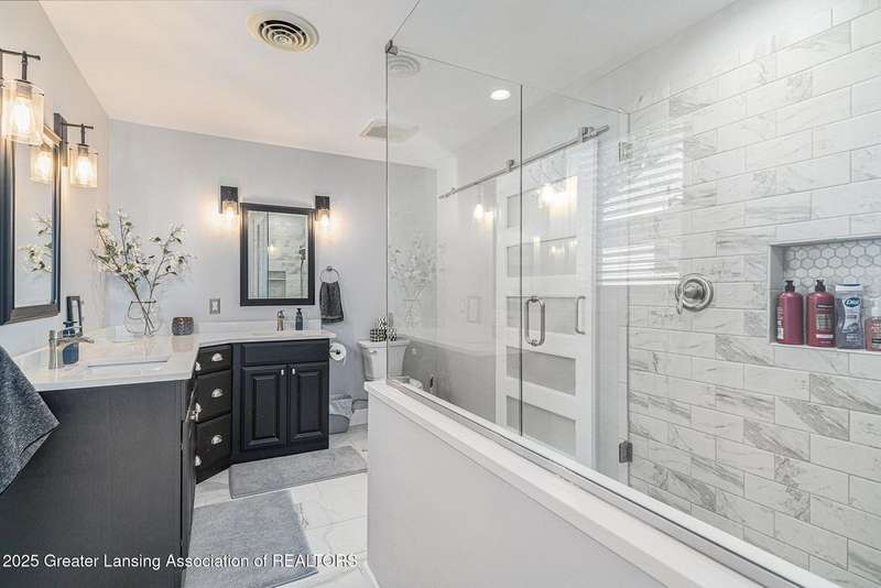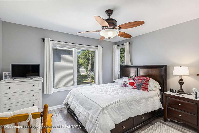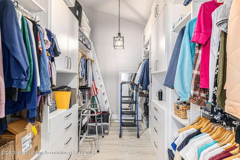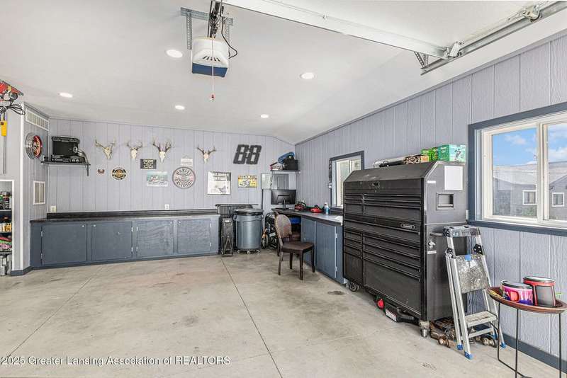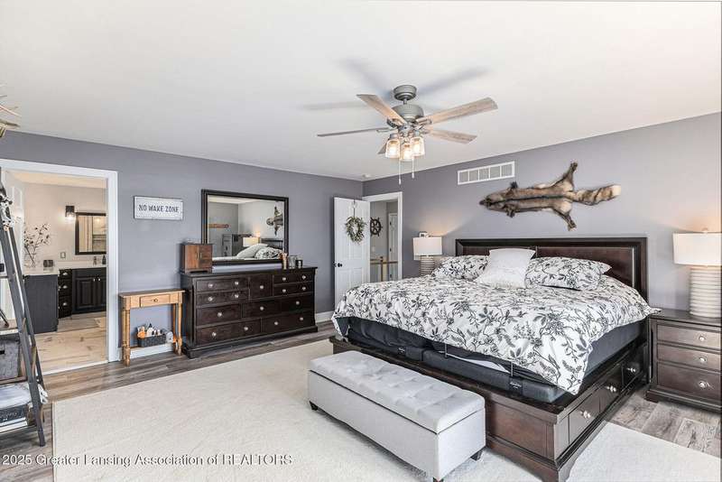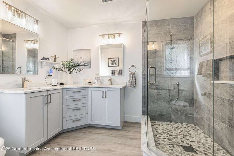If you've been searching for a one of a kind home on the Huron chain of lakes, this is it! The entire 3,216 sq ft two story home has been professionally and tastefully updated on the exterior and interior. Features 5 bedrooms, 3.5 bathrooms, main floor primary suite is massive with soaring ceilings, a cozy built in fireplace surrounded by shelves, a huge custom built WI closet, large bathroom w/dual sinks, tiled walk-in shower and granite countertops, complete with door to your own private covered concrete patio with recessed lighting & ceiling fan. 2nd floor features remodeled primary suite with fireplace, updated bath with dual sinks,tiled walk in shower, closet and additional laundry area. Three additional spacious bedrooms and a full bath are located on the second level. Gorgeous kitchen with SS appliances and quartz countertops that wraps around to the spacious open dining/living room area facing the lake and new trex deck with recessed lighting & ceiling fans. Three car detached finished, heated garage with stairs to a loft for extra storage. All new concrete drive, (lots of parking) patio space & sidewalk to dock/lake. Within the last few years this home has had all new flooring throughout, a new roof (house & garage), new siding, new two-zoned unit furnace & AC, new water heater, too many upgrades to mention. Basically a brand new home with 49 feet of lake frontage, an outdoor shower convenient for rinsing yourself or your pets after a lake day/swim. Also includes generator that is wired to run the entire house.