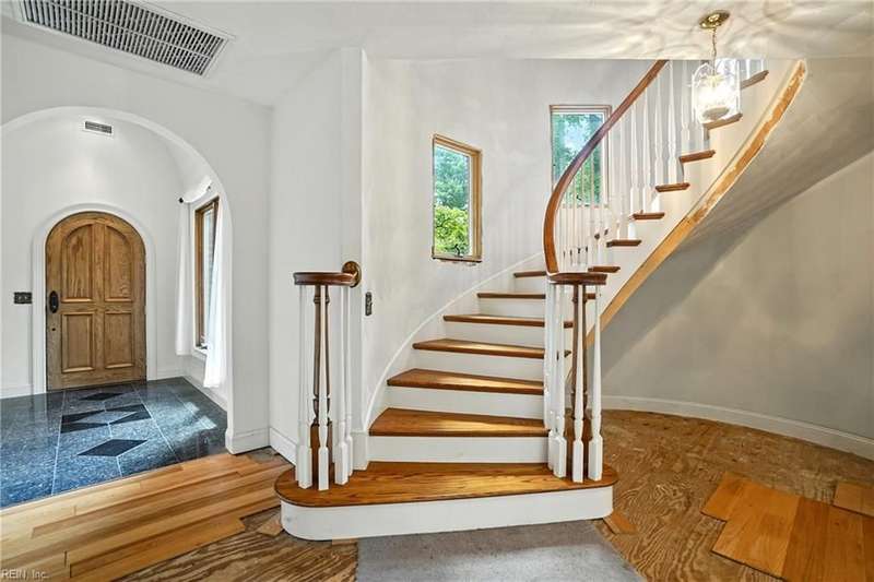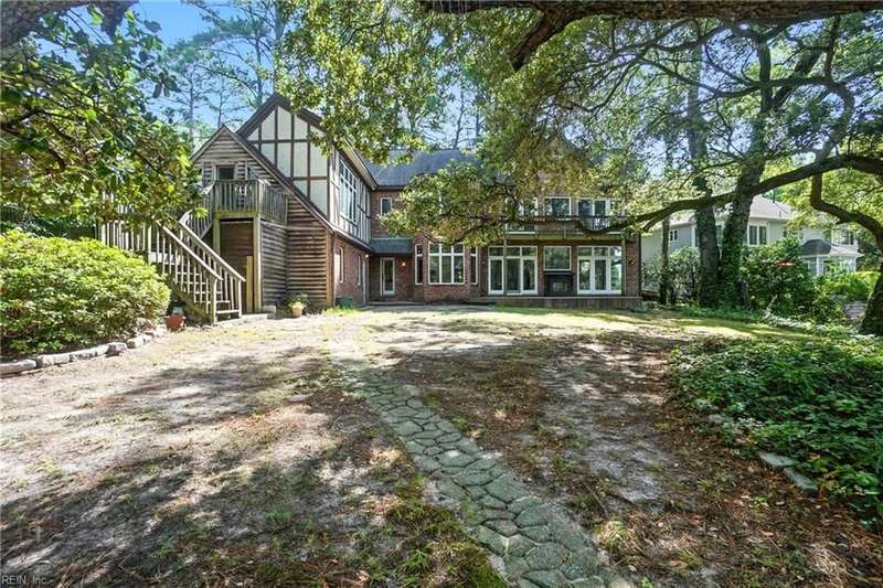 Almost 1-acre waterfront retreat offering 3,865 sq ft, 4 bedrooms, and 4 baths with endless potential. Originally built on the foundation of a classic home, this custom Tudor-style residence blends timeless architecture with modern design elements. Expansive living and entertaining spaces feature an open kitchen and great room with a gas fireplace, Anderson windows, and sweeping views of the water and sunsets. One large bedroom with private back entrance is ready to be completed to suit your vision. Generous storage abounds with an oversized 2-car garage, workshop, and carport. Outdoors, enjoy serene natural surroundings, direct water access, and room to create your dream backyard oasis. Seller provides original plans, inspections, and documentation; no flood insurance required per records. A rare opportunity to finish and customize a stately waterfront home in an exceptional setting.