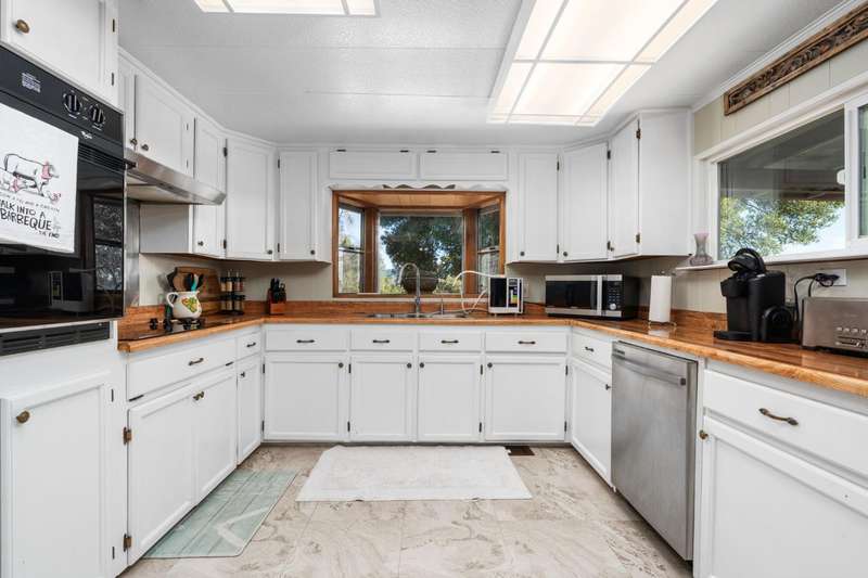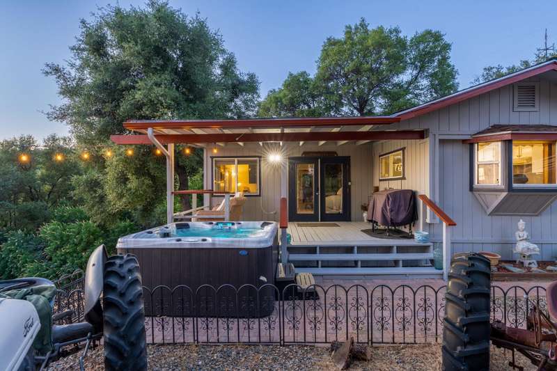 Breathtaking Views from Taylor Mountain!Experience stunning sunsets every evening, overlooking Oakhurst and the Sierra Nevada mountains, all from the comfort of your hot tub or while enjoying a cool drink on your covered porch.This well-maintained 1971 manufactured home, thoughtfully expanded in 1985, offers 4 bedrooms, 2 full bathrooms, and 1,683 sq ft of living space including a primary suite with a relaxing Jacuzzi tub. Large windows fill the home with natural light, showcasing impressive views from both the living room and primary bedroom.Recent upgrades include newer mini-split systems, newer furnace, Rinnai tankless water heater, EPA-compliant wood stove, and a large hot tub. A newly built shop with power is ready for your next project, and the spacious under-home storage provides ample room for tools, toys, or equipment.Sitting on a private 5.04-acre lot, there's plenty of space to add an ADU, garden, or whatever fits your vision. Come see why life on Taylor Mountain feels like you're on top of the world!