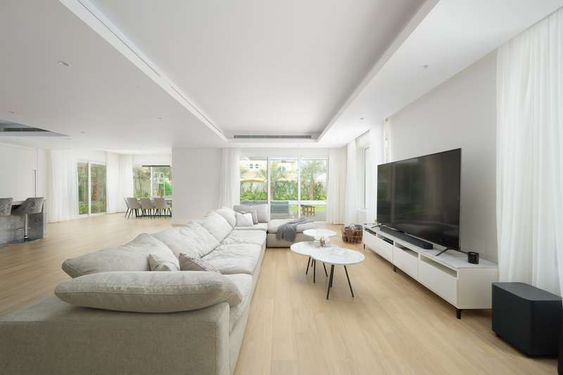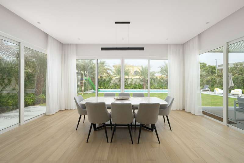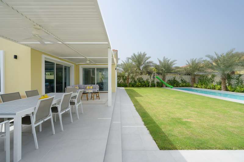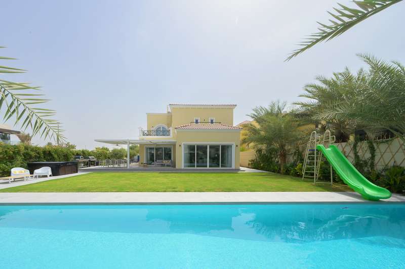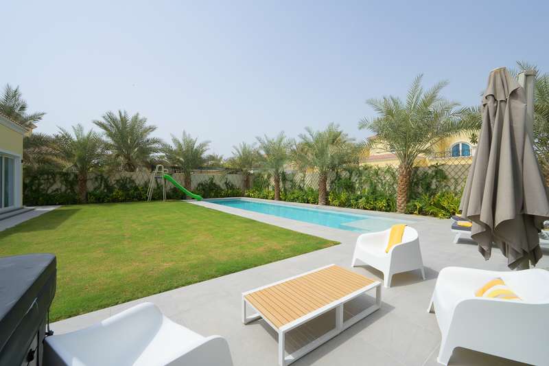 Claire and Betterhomes are pleased to present this upgraded four-bedroom villa in the prestigious Jumeirah Park community. Spanning 4,550 square feet on a 9,050 square foot corner plot, this spacious home offers four bedrooms, a maid's room, and two family rooms—perfect for large families. The villa features an extended loggia overlooking a beaut landscaped garden with a temperature-controlled swimming pool. The kitchen is expanded with a large island and additional storage, while high-end appliances are included. With ample storage throughout and a dedicated maids room, this home combines luxury with practicality, making it an ideal family residence in a sought-after location. - Legacy type - Corner unit - Best district - 4 Bedrooms - Maid's and Family Room - walk-in pantry - Double walk-in shower - Kitchen Island (5 meters long) - 2 garage car parking spaces - BUA: Approximately 4,550 sqft - Plot: Approximately 9,050 sqft - Upgraded + Extended - walk-in wardrobe - Extended Logia - 6 Bathrooms - 15 Meter Private Pool with heater/chiller - Back To Back - Vacant In September - Lots of storage space - Jacuzzi - Appliances included - Outdoor dancing floor