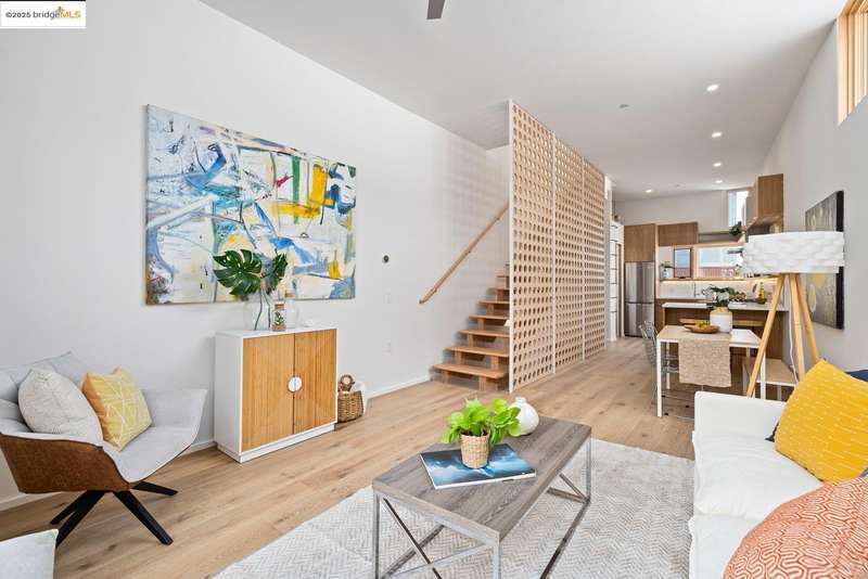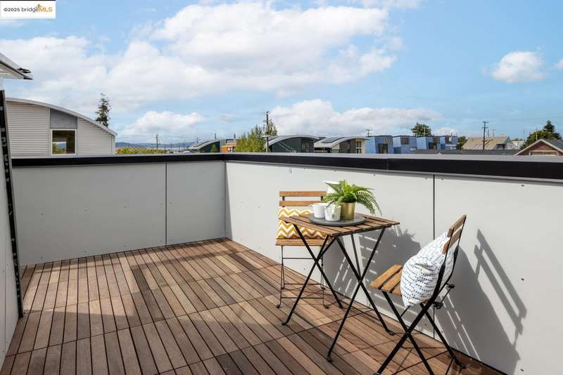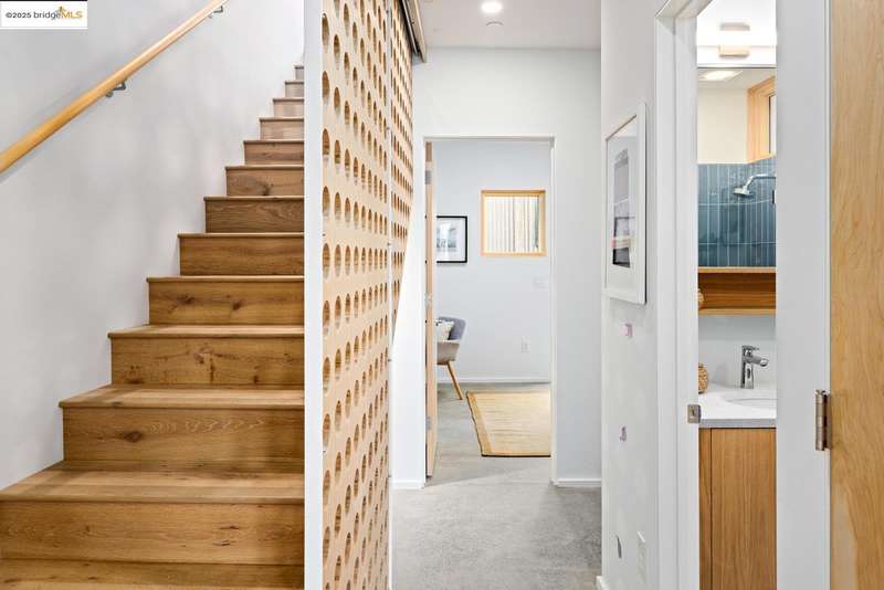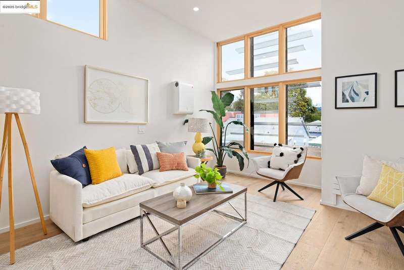 One of six sleek, sustainably built 2BD/1.5BA newly completed residences rise on a once-vacant and walkable infill site just blocks from parks, cafés, shopping, and transit. Each home flips convention with an inverted floor plan—private bedrooms below, open living and kitchen space above—and a rooftop deck showcasing Bay breezes and hill views. Thoughtful design brings in abundant daylight through large Marvin windows with unconventional sunscreens, while tight construction, high R-value insulation, and HRV ventilation ensure comfort and efficiency. Eco-forward features include permeable paving, DrivableGrass parking, natural wood siding, on-demand hydronic heat, recycled glass counters, low-flow fixtures, dual-flush toilets and individual 220 outlets for EV charging. Ten new trees, including fruit varieties, add beauty and shade. You'll find this modern Berkeley living smart, sustainable, and unapologetically stylish. Pricing may differ per unit. Open Sat/Sun 1:30-4:30