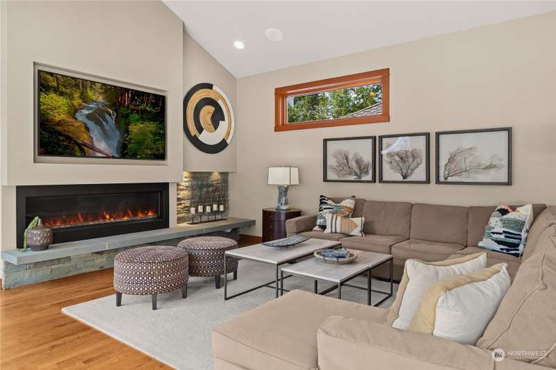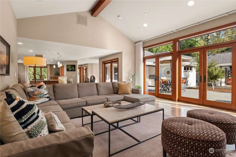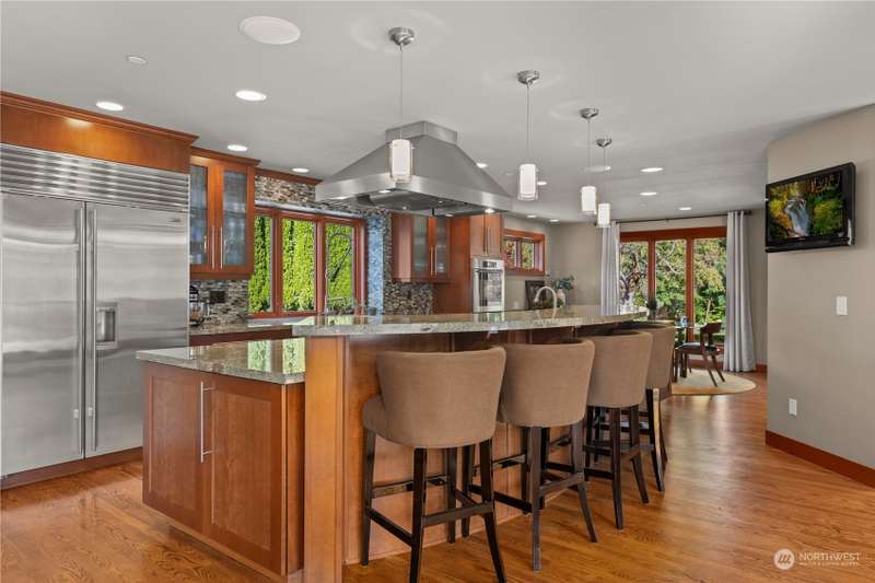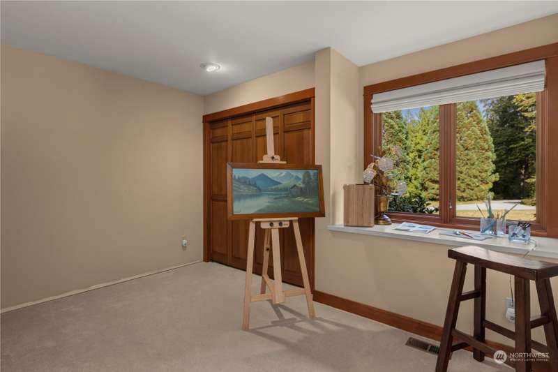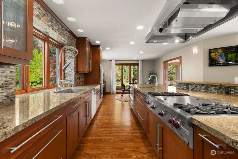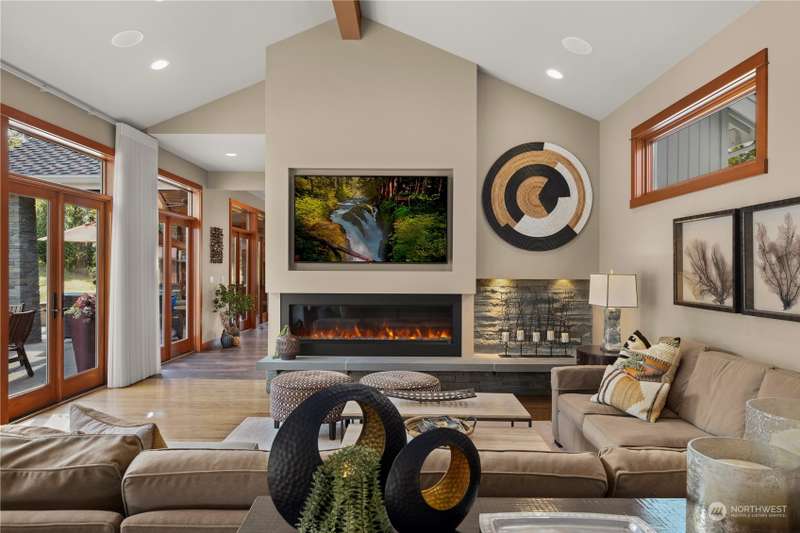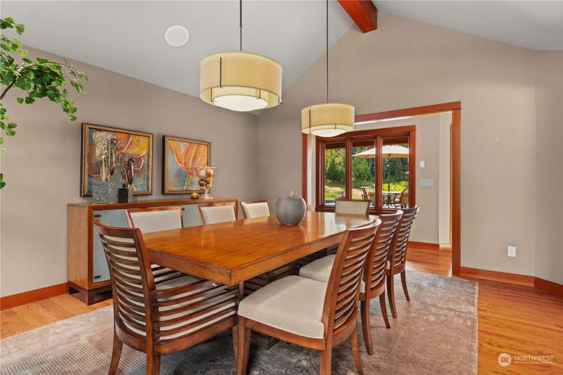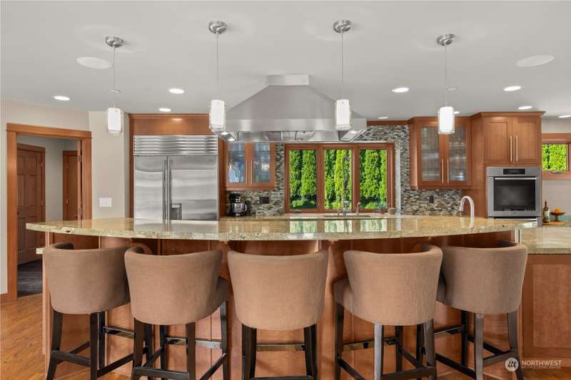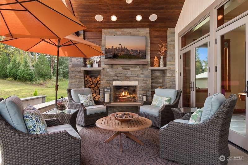 Discover a rare gem: a custom-built rambler on 5+ secluded acres. This one-owner home fuses Pacific Northwest style with modern luxury. Inside, rich earthy tones and a mix of wood, stone and granite create a warm inviting atmosphere. The expansive kitchen, with professional-grade appliances and a massive island, is perfect for entertaining. Nearby, the game room with a wet bar offers a relaxed space for unwinding. Step outside to your private oasis—warm up by the outdoor fireplace or take a dip in the shimmering pool. End the evening in the hot tub beneath a canopy of stars. With a large detached shop, easy access to Soaring Eagle Park and Lake Washington schools, this retreat offers serene privacy just minutes from nearby conveniences.