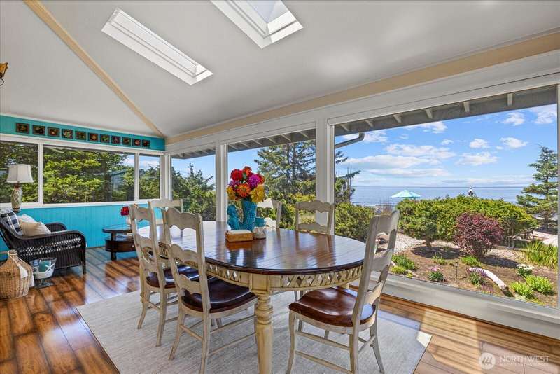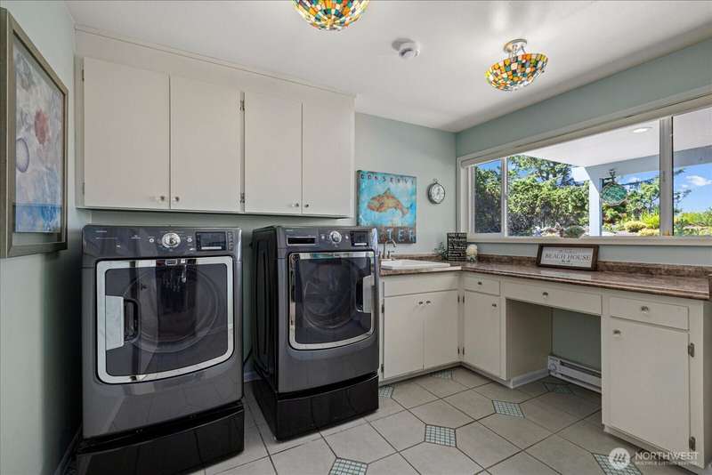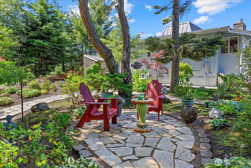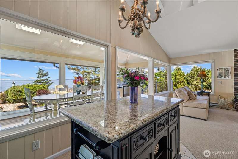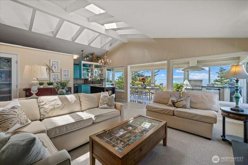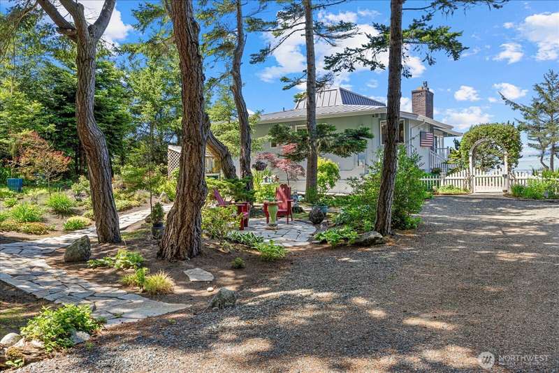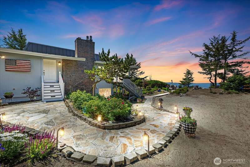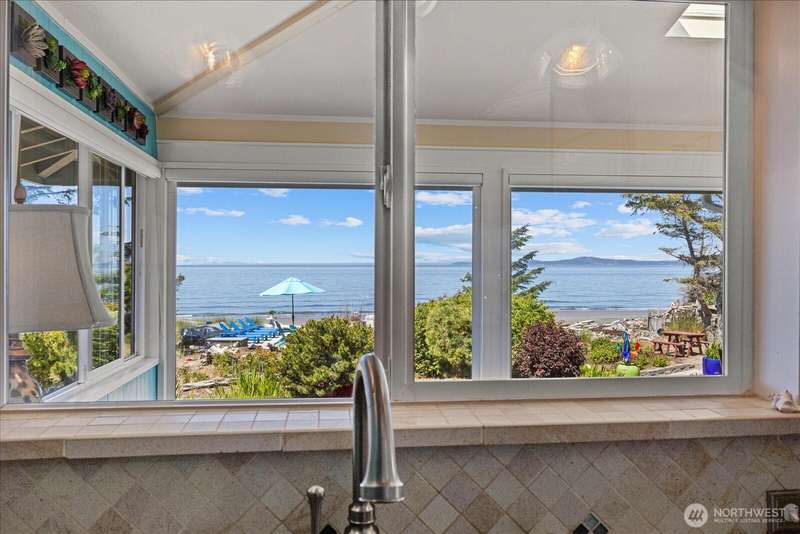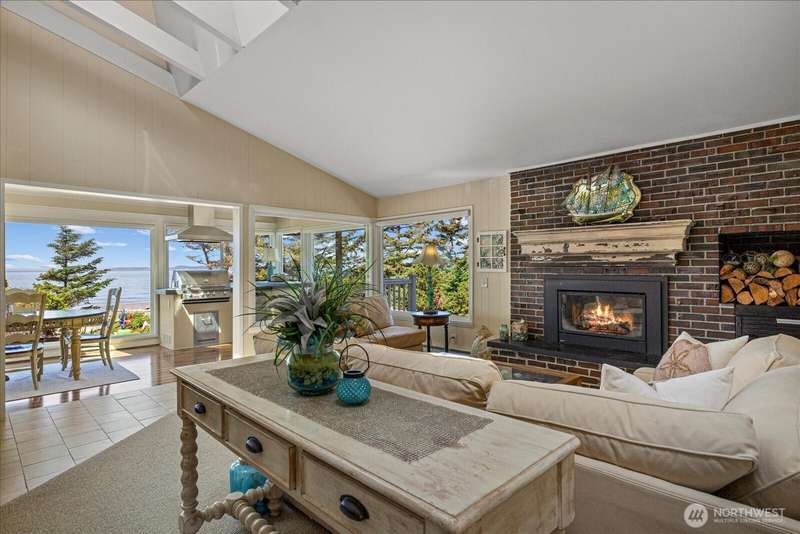 99' of walk-on sandy beach WATERFRONT to this Beautiful 3-bed, 2.5-bath home with breathtaking views of Puget Sound and the Olympic Mountains. Inside features vaulted ceilings, a remodeled kitchen with granite countertops and stainless appliances, propane fireplaces on both levels, and a bright sunroom with wall-to-wall windows and built-in propane BBQ. Entertain indoors or out—enjoy sunsets around the firepit on the sun deck, gather on the patio, or relax in the sunroom. Landscaped yard with herb garden, detached 2-car garage, and automatic generator. Located in a gated community, just steps from scenic trails and walking distance to Deception Pass State Park, and minutes to Oak Harbor and Anacortes.