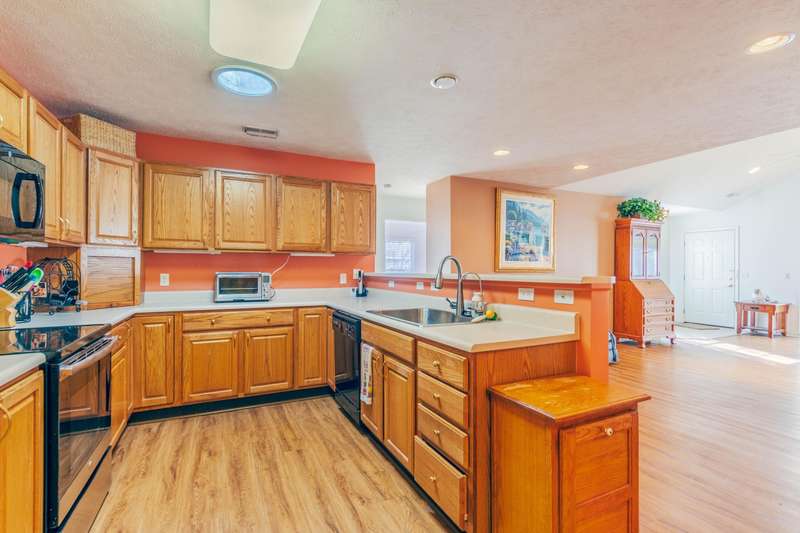 Ranch condo in the Village at Brighton Lane. Quiet community in the heart of Portage, close to modern conveniences. Open floor plan with vaulted ceilings. Over 1700sqft of finished main floor living space. Large pantry, abundant cabinetry and snack bar in the kitchen. Three bedrooms and two full baths with excellent closet space throughout. Light and bright sunroom off the family room. Gas log fireplace with built-ins. All appliances included in the sale. Vaulted primary suite with private bath and walk-in closet. Two car attached garage. Association covers;Lawn;Snow;Trash;Sewer;Water.