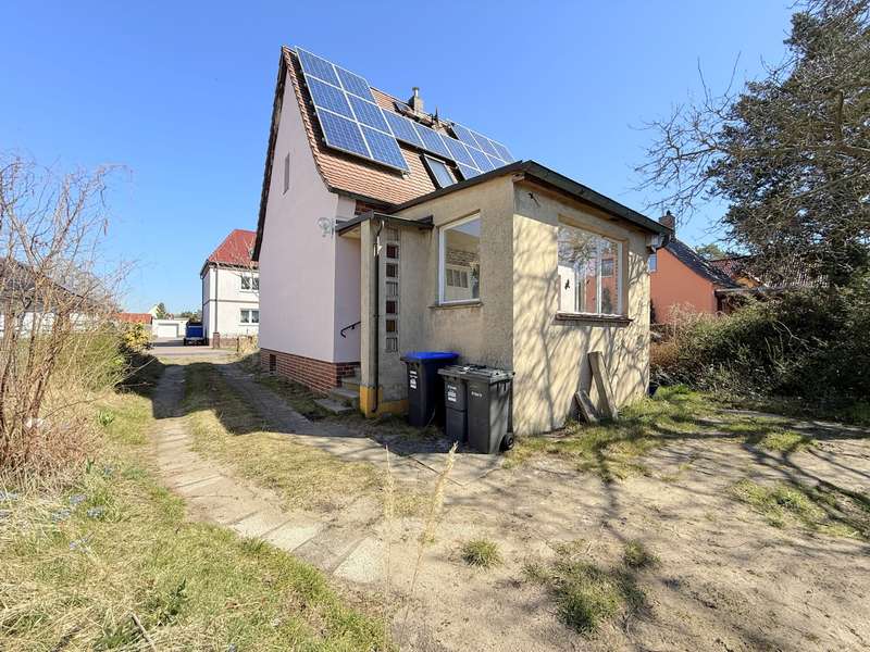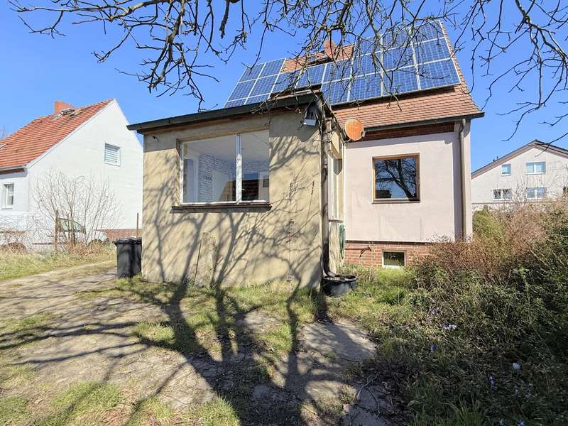 New build or renovation? This charming detached house offers you many possibilities. Welcome to a place where history meets the future - this charming detached house from 1938 is located in a popular residential area in Brandenburg an der Havel and is waiting to be awakened from its slumber. With a keen eye for detail and your personal ideas, you can transform this home in need of renovation into a real gem. The first floor is divided into a light-flooded vestibule with a view of the inner courtyard, a manageable hallway, a spacious bathroom with shower and a kitchen with adjoining living room. A large bedroom under the sloping ceilings of the house completes the space. On a living space of approx. 70 m², you have the opportunity to give free rein to your ideas. The property has a full basement. The basement offers additional storage space and a variety of uses on a floor area of approx. 50 m². The gas central heating was installed in 1993 and the roof was renewed in 1997. A PV system reduces the house's electricity costs and already offers energy potential for the future. The plot has already been divided and has an area of approx. 650 m². The garden is a green oasis with mature trees, a romantic pond and plenty of space for garden dreams or future building projects. An outbuilding houses a garage, a workshop and a shed - ideal for hobby craftsmen, tinkerers or simply as a practical space miracle. Whether careful renovation, individual conversion or even a completely new start - this property offers you a wide range of possibilities. The quiet location in a sought-after residential area rounds off the offer harmoniously. A real collector's item with heart, character and perspective - discover the hidden potential of this small house with great promise. Note: Once you have completed your contact details, the brochure will be sent to you automatically. Please contact us personally for further questions or to arrange a viewing.