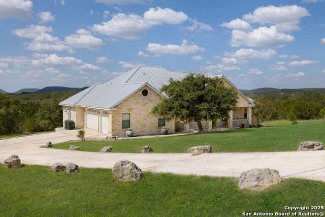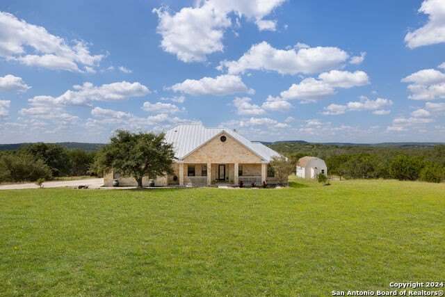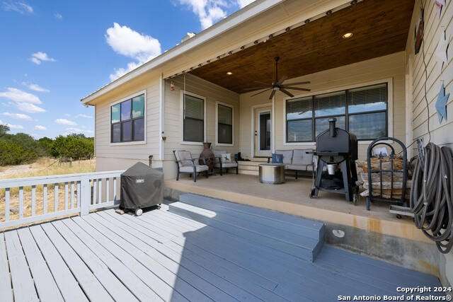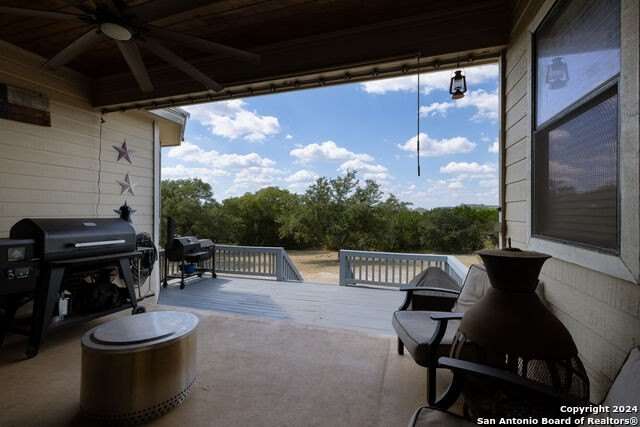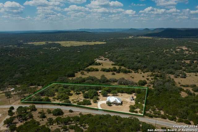 This beautiful Hill Country custom built home is a MUST SEE! It is nestled on 5 acres in the scenic and sought after gated Hills of Bandera Ranch. Enjoy 2,723 sq ft that includes 4 bedrooms, 2.5 bathrooms and two covered patios, one with an elevated deck that provides breathtaking views. This home boasts an open floor plan that includes Knotty Alder doors and cabinets, a rock fireplace, a chef's kitchen with a commercial grade Wolfe range with griddle, broiler, double ovens and a pot filler. Enjoy the walk-in pantry with built-ins and a large primary bedroom with a spa-like en-suite bathroom. This property has a horse ranch behind it and The Hill Country State Natural Area with 5,000 acres including horse and bike trails is situated beside it with private access for neighborhood residents! Take in the country life while also enjoying high speed internet and the convenience of only being 11 miles from downtown Bandera. Amenities in the neighborhood include 3 ponds that are stocked, horse and hiking trails. This is a Hill Country dream come true! **Assumable loan with low interest rate available to qualified buyer.**