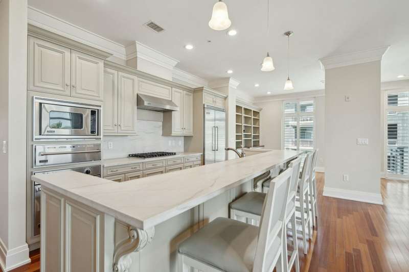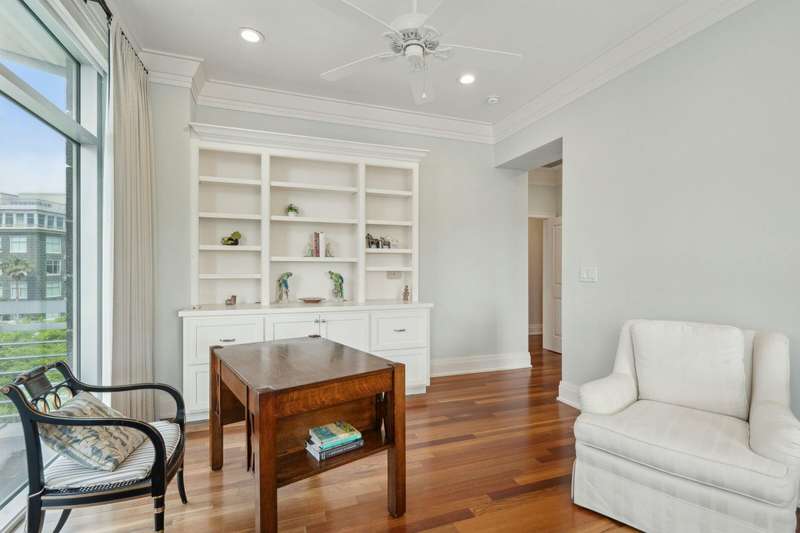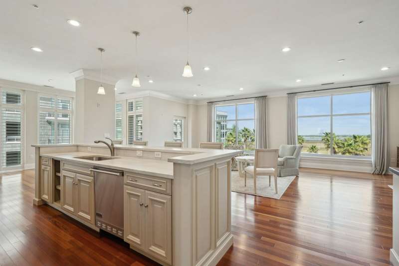 Fabulous opportunity to own this beautiful property at Tides 3 with spectacular waterfront views. Luxurious condominium located at the base of the signature Ravenel Bridge overlooking the Cooper River. Spacious living areas opens to large terrace. Included in the living room, you will find a built in bar with a wine and beverage fridge. Gourmet kitchen offers Viking appliances and center island for informal dining. Elegant primary suite with custom built-in cabinets and private balcony. Amenities include a pool, hot tub and fitness center. Minutes from Historic Charleston.