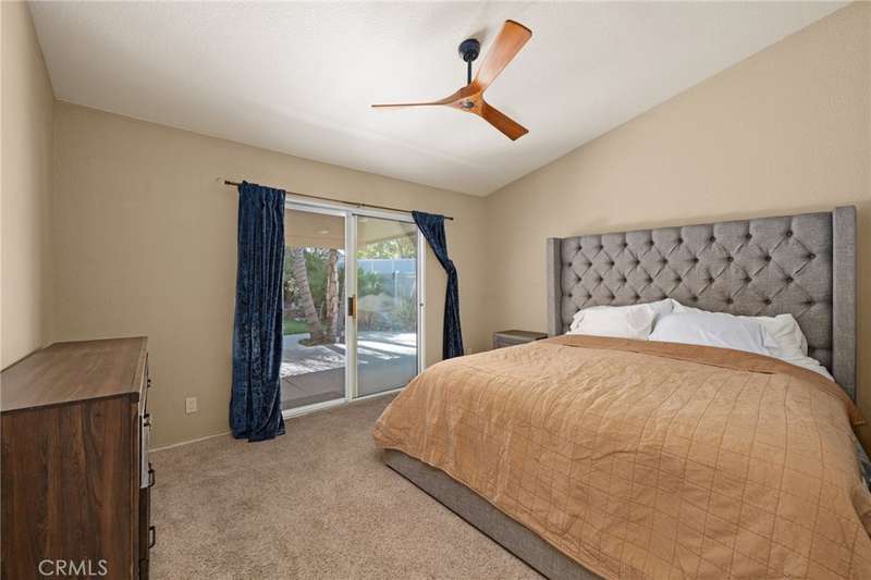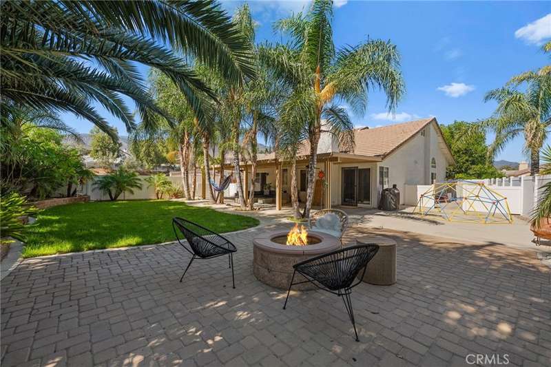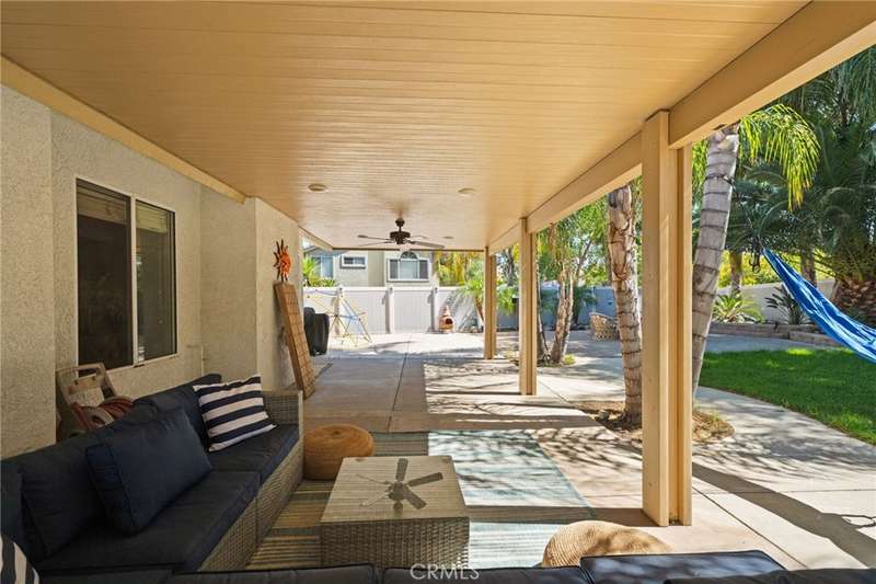 Welcome to this beautifully maintained single-story home in the highly desirable Horsethief Canyon community. Featuring three bedrooms and two bathrooms, this property offers both comfort and functionality in an ideal layout. Step inside to a bright and inviting living room with ample space for entertaining, seamlessly connecting to the open-concept kitchen. The kitchen flows into a separate family room, where large windows provide stunning views of the expansive 10,454 sq. ft. backyard. The bedrooms are thoughtfully situated on the opposite side of the home for added privacy. The spacious primary suite includes a walk-in closet and an ensuite bathroom with dual sinks and a bathtub/shower combo, perfect for unwinding after a long day. This home also features a three-car garage with abundant storage, all set on a quiet cul-de-sac. The oversized lot offers endless possibilities--entertain guests by the outdoor fireplace, relax under the shade of towering palm trees with a hammock, or take advantage of the usable space for an ADU or RV parking. With access to the community amenities, you can enjoy the clubhouse, basketball and tennis courts, a lap pool, gym, sauna, barbecue area, outdoor cooking, picnic spots, and a dog park. Don't forget the low taxes and no Mello Roos! With its rare single-story layout, generous lot size, and sought-after location, this property truly has it all. Don't miss your chance to call this home yours!