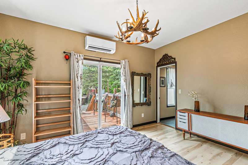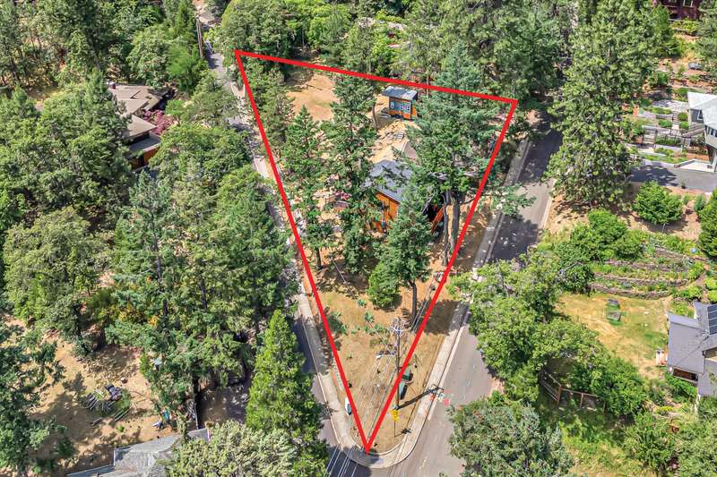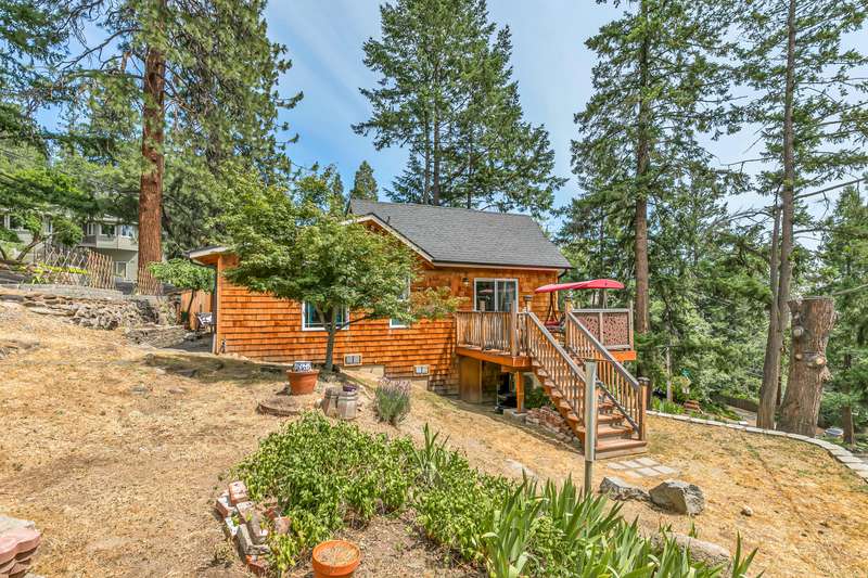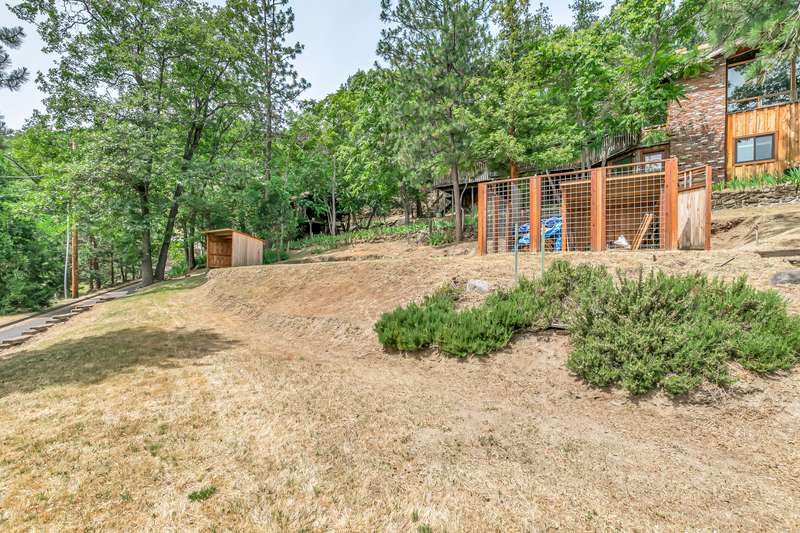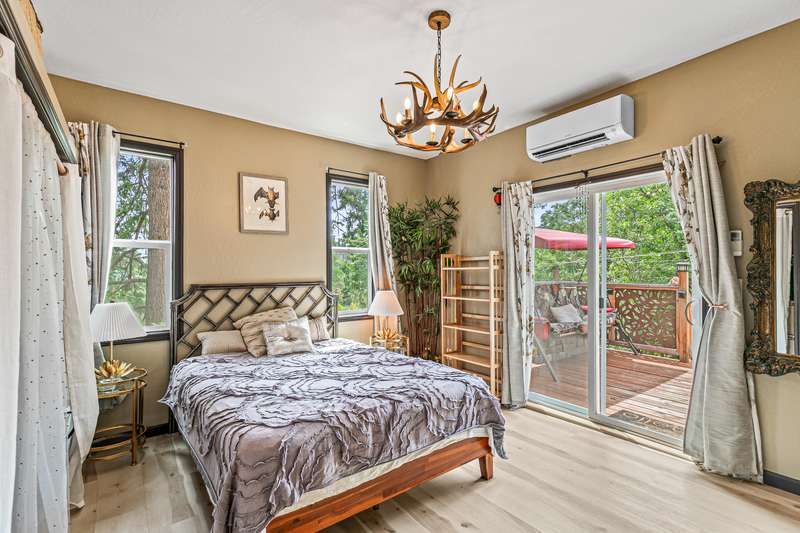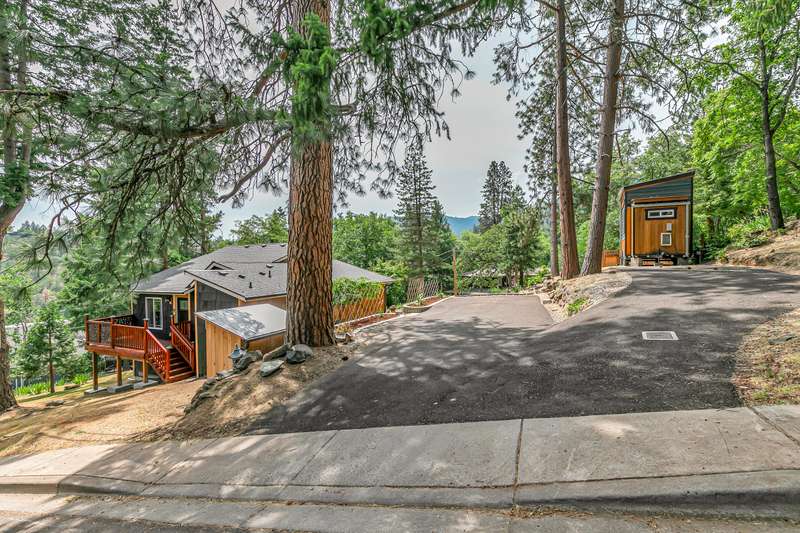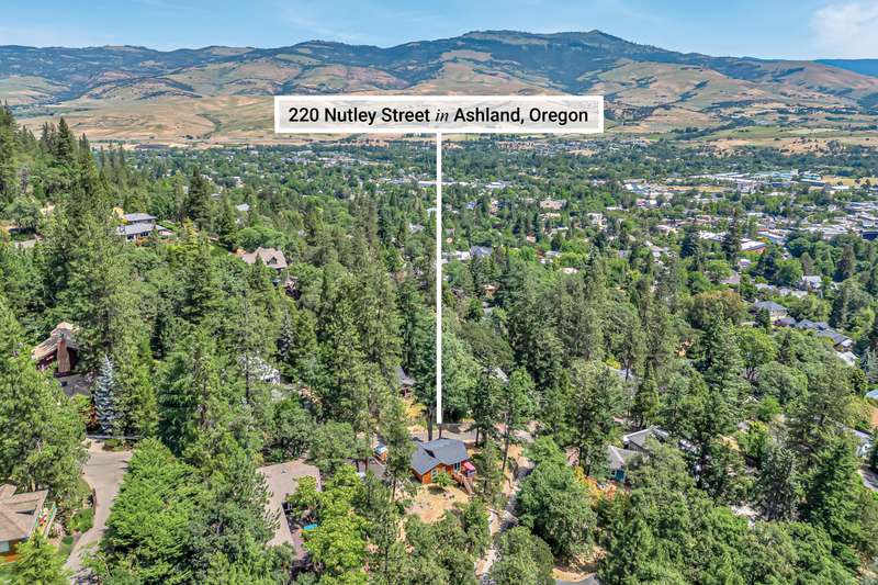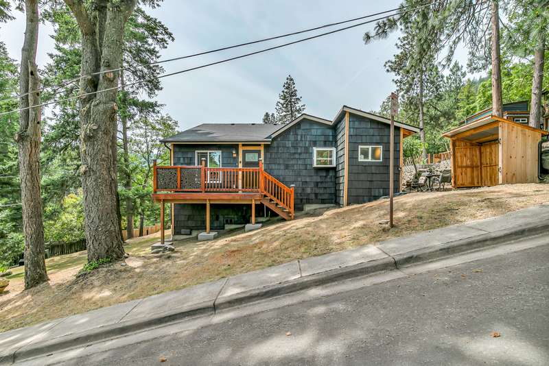 Completely rebuilt single-level 1920s cottage on a third-acre parcel between Lithia Park and Hald-Strawberry Park, just two minutes from Ashland's downtown plaza! New roof, foundation, windows, waterproof LVP floors, electrical, plumbing, and sewer line as of 2022. Vaulted kitchen with chandelier, butcher block dining island and counters, granite double sink, marble tile backsplash, electric range oven with copper hood, and walk-in pantry with stainless refrigerator. Primary suite with horn chandelier, closet, sliding glass door to private deck, and full ensuite bath with marble vanity, tile floor, and clawfoot soaking tub with tile surround. Vaulted living room with ceiling fan and door to front deck. Guest bedroom or office with vaulted ceiling, built-in shelving, and closet. Mudroom with tile floor, stacked washer dryer, and full bath with tiled tub shower. Terraced grounds, TID irrigation, new asphalt driveways, outbuildings, and tiny home with RV hookups. Inquire for details!