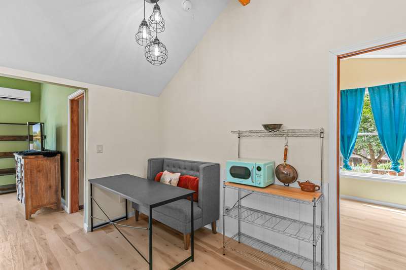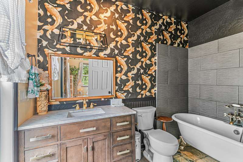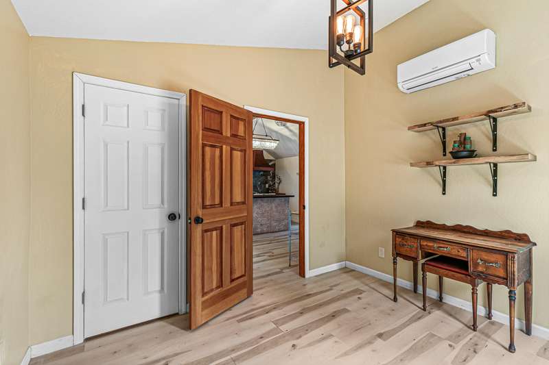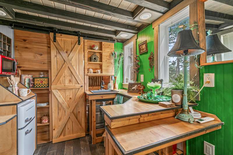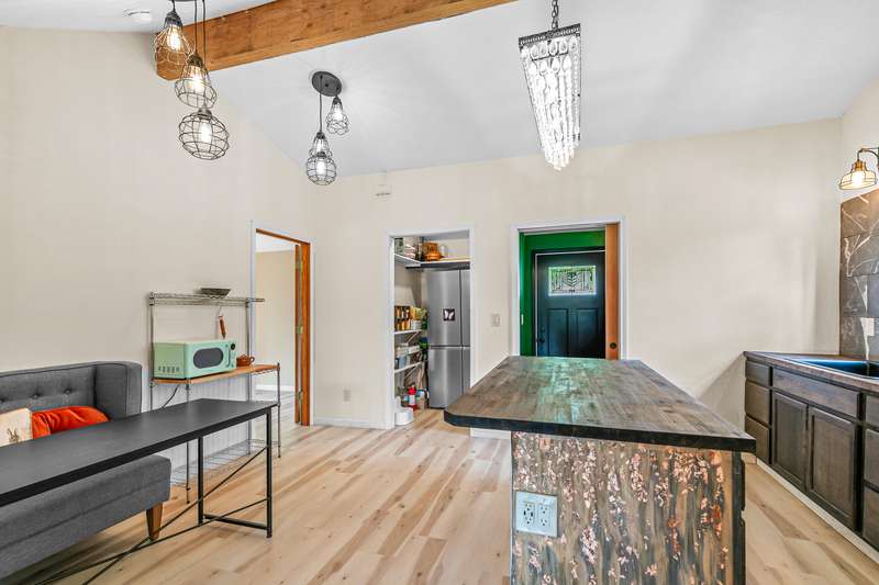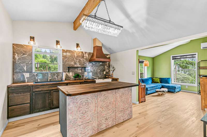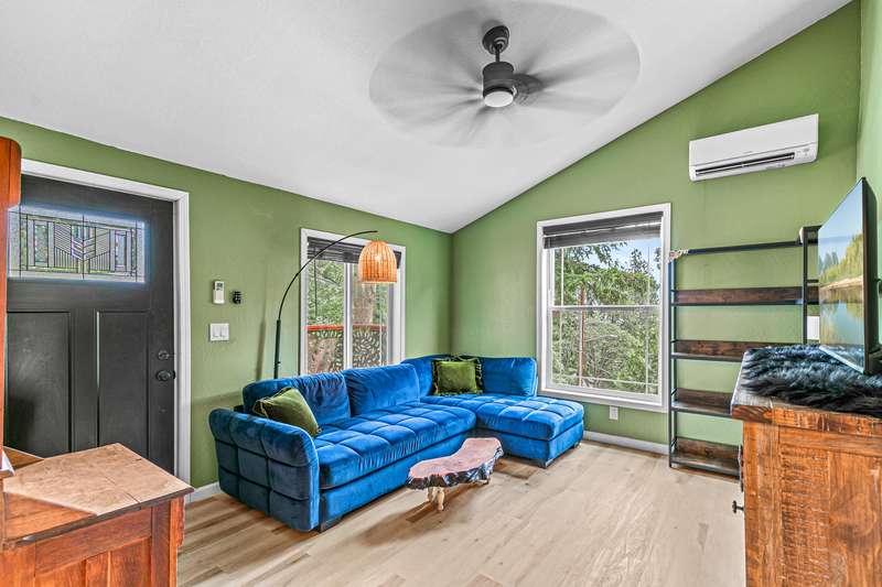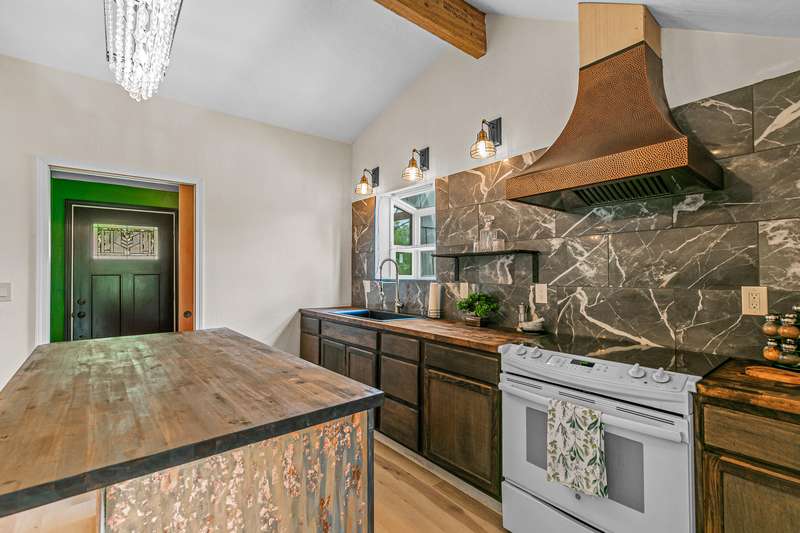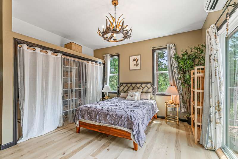 Completely rebuilt single-level 1920s cottage on a third-acre parcel between Lithia Park and Hald-Strawberry Park, just two minutes from Ashland's downtown plaza! New roof, foundation, windows, waterproof LVP floors, electrical, plumbing, and sewer line as of 2022. Vaulted kitchen with chandelier, butcher block dining island and counters, granite double sink, marble tile backsplash, electric range oven with copper hood, and walk-in pantry with stainless refrigerator. Primary suite with horn chandelier, closet, sliding glass door to private deck, and full ensuite bath with marble vanity, tile floor, and clawfoot soaking tub with tile surround. Vaulted living room with ceiling fan and door to front deck. Guest bedroom or office with vaulted ceiling, built-in shelving, and closet. Mudroom with tile floor, stacked washer dryer, and full bath with tiled tub shower. Terraced grounds, TID irrigation, new asphalt driveways, outbuildings, and tiny home with RV hookups. Inquire for details!