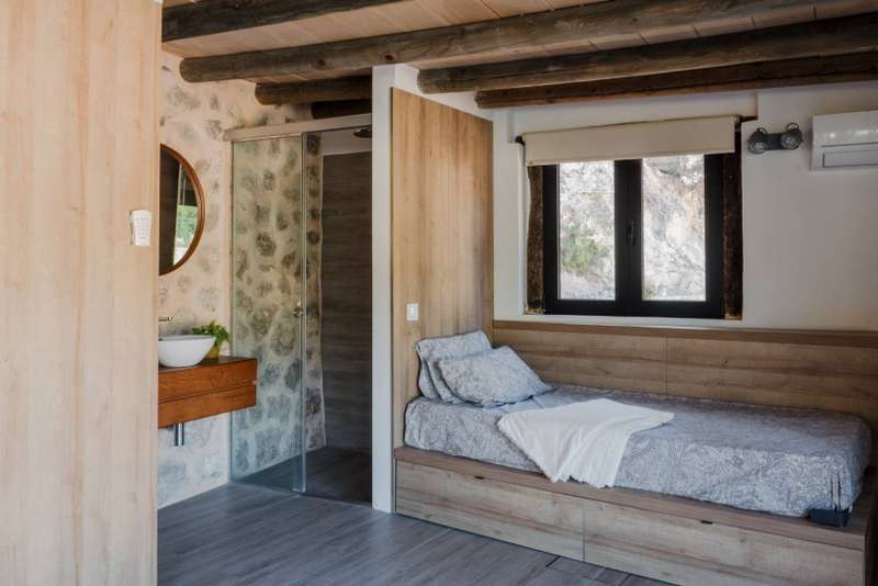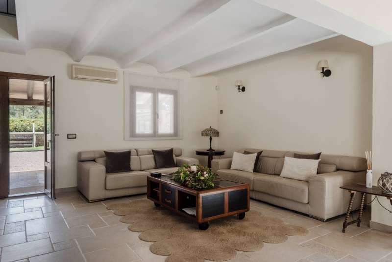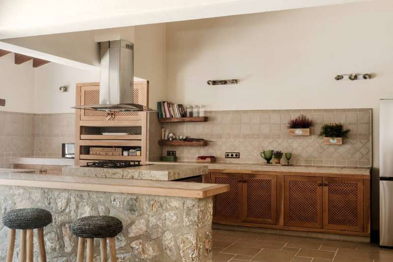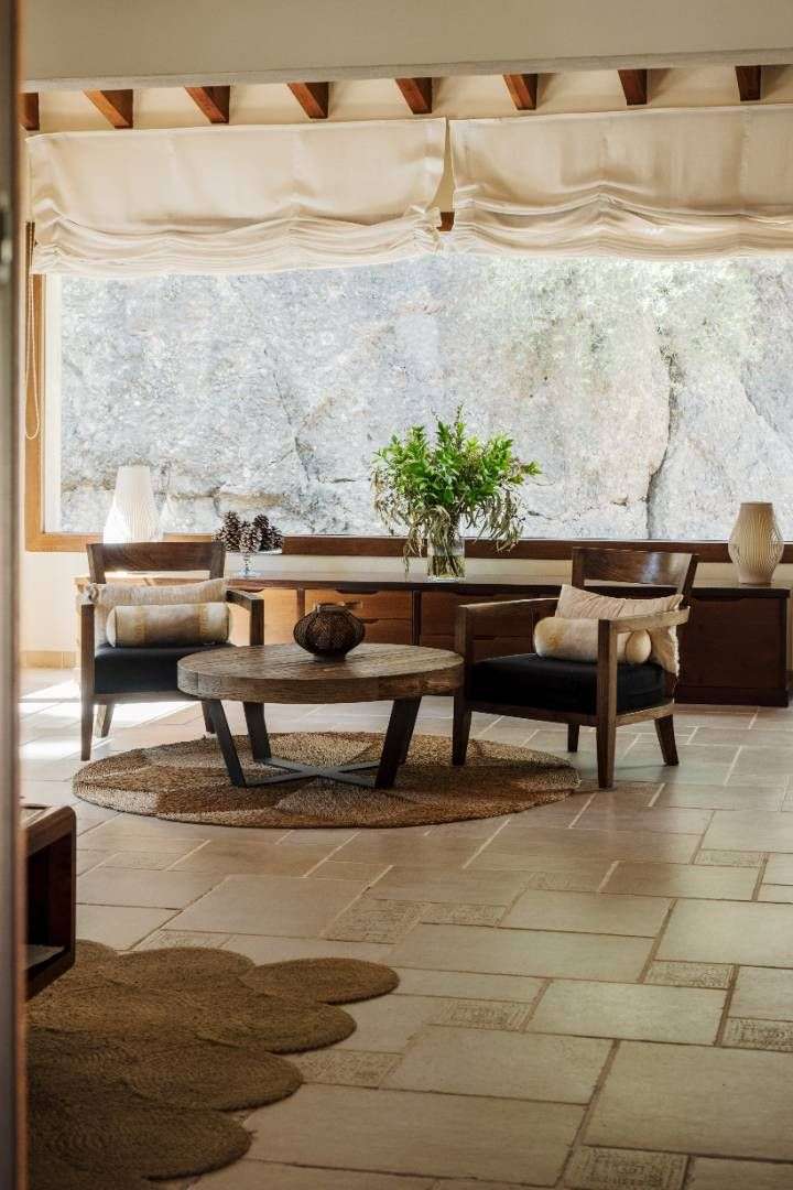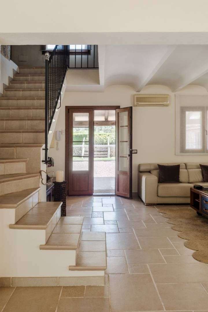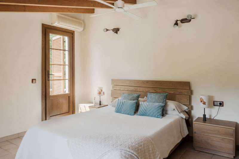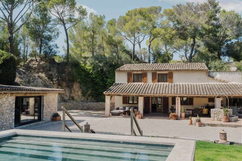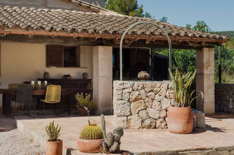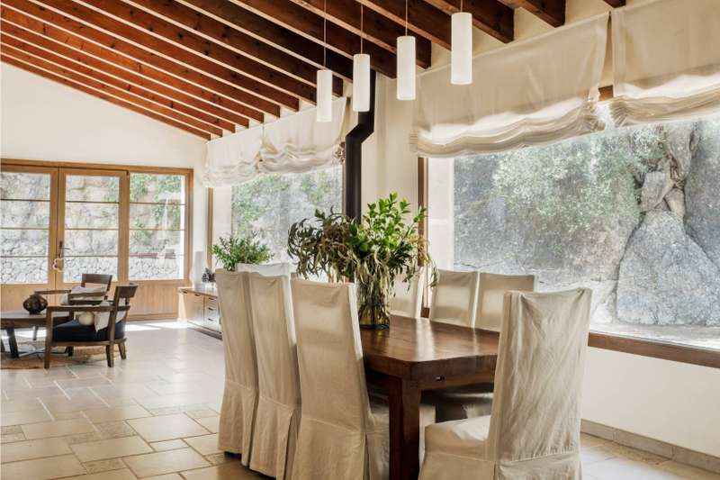 This amazing house is located in the heart of Calvià. You can enjoy the total privacy that the property provides while enjoying the mountain view and the natural surroundings. The modern Mallorquin rural style in combination with Nordic interior design makes it the perfect cozy home. The property has a main house and a separate guest house, which is great to keep the feeling of privacy. This house is all about the amount of natural light that you have inside thanks to the size of the windows and the southern orientation. The open kitchen connected with the dining and living room, makes a great entertainment area where you can all be together while at the same time participating of different parts of the house. The high ceilings with exposed wooden beams make every room so spacious and beautiful! The outdoor area is the cherry on the cake with an amazing designer pool, luscious green grass and a big porch with different dining and lounge areas. One of the most original features is t