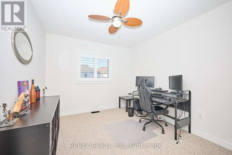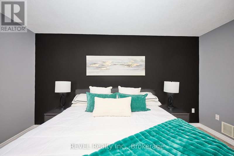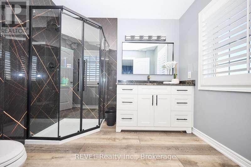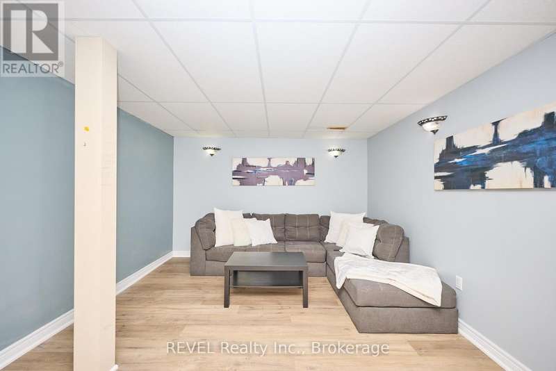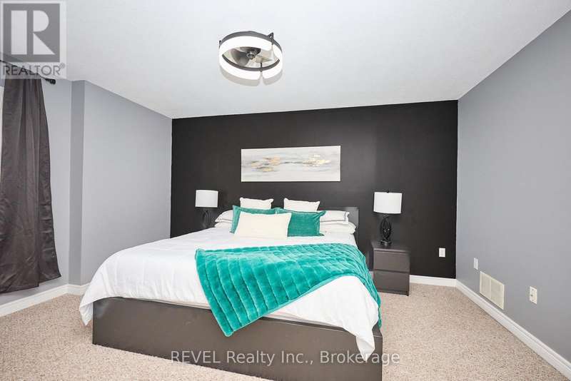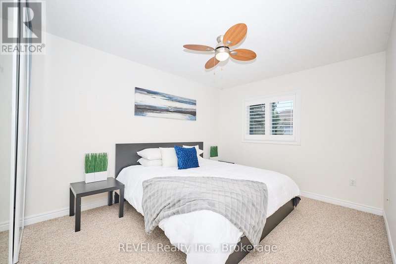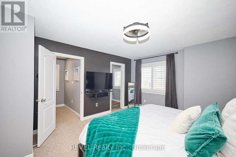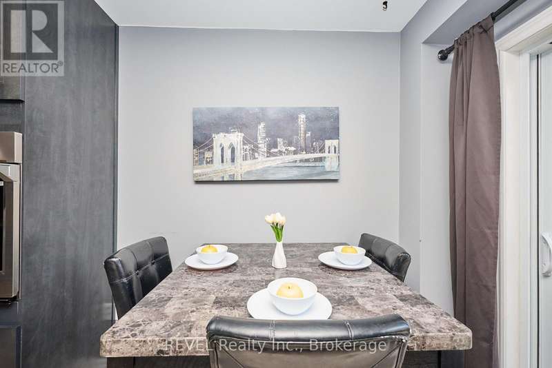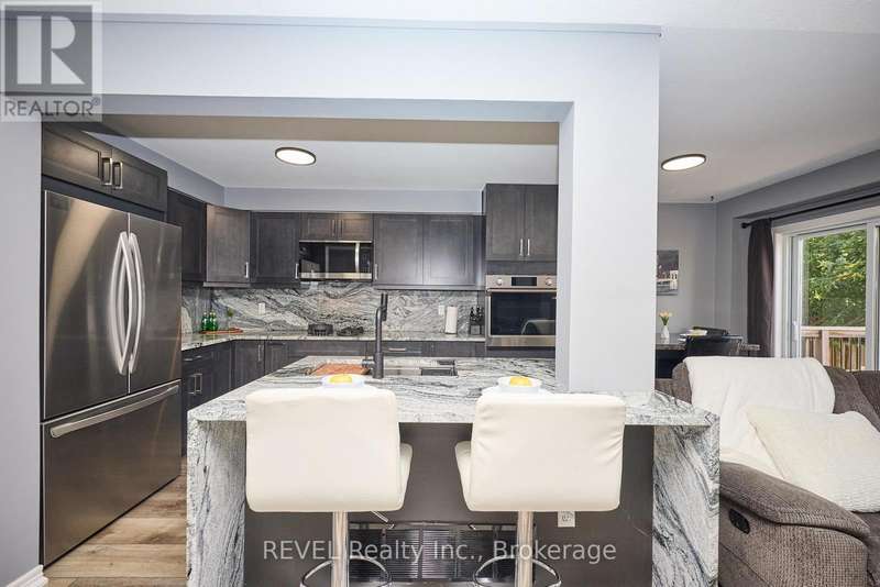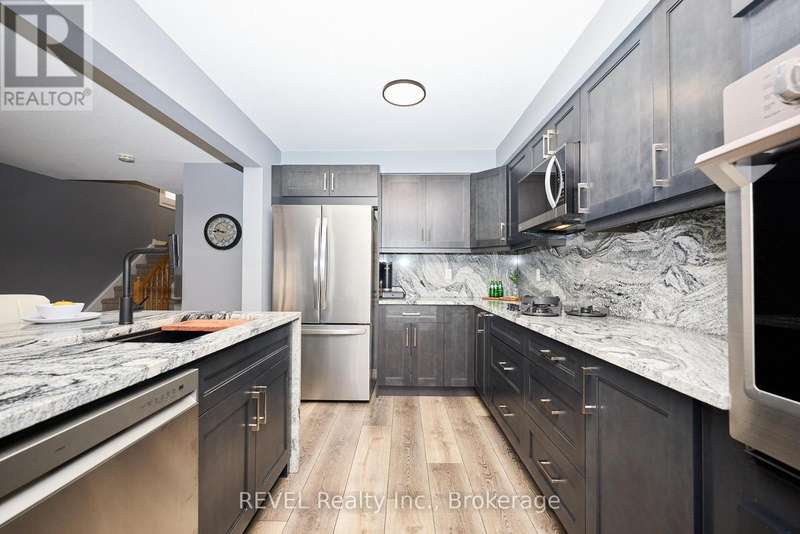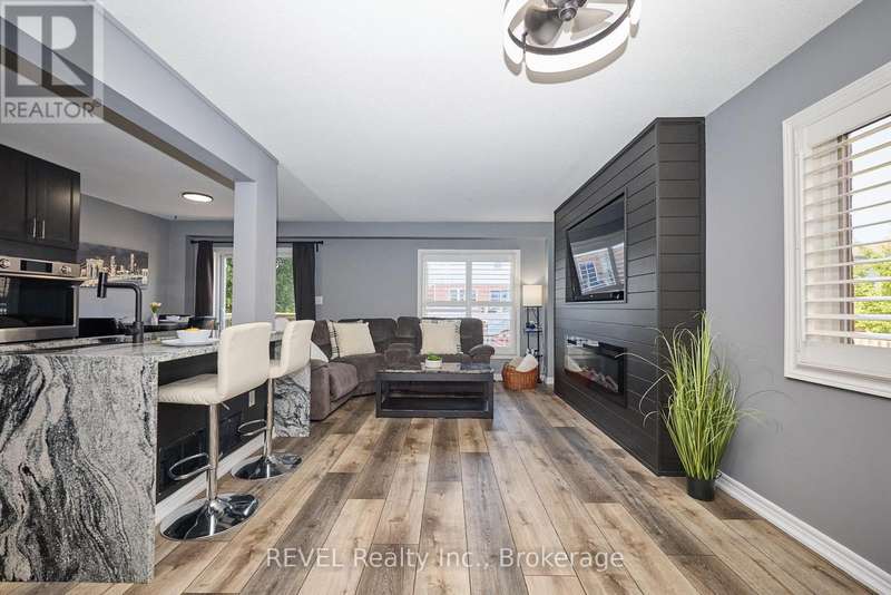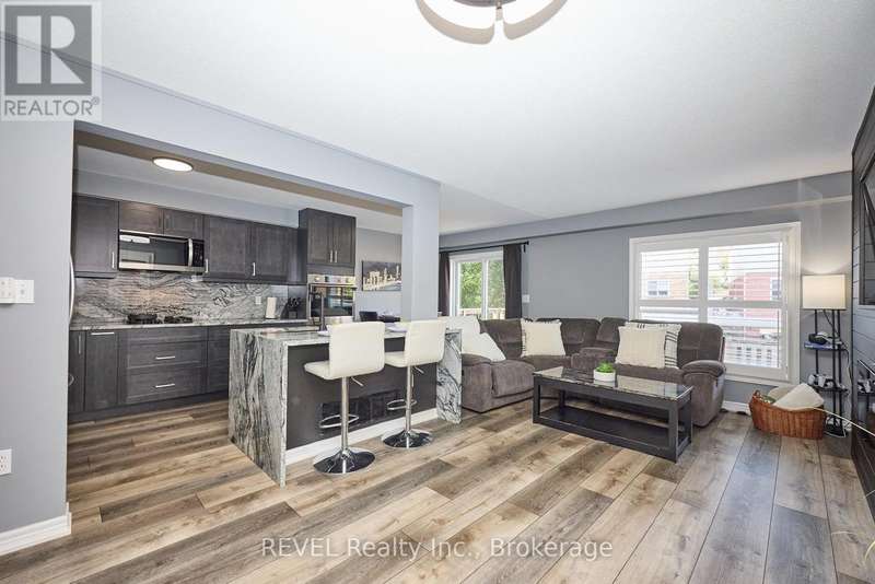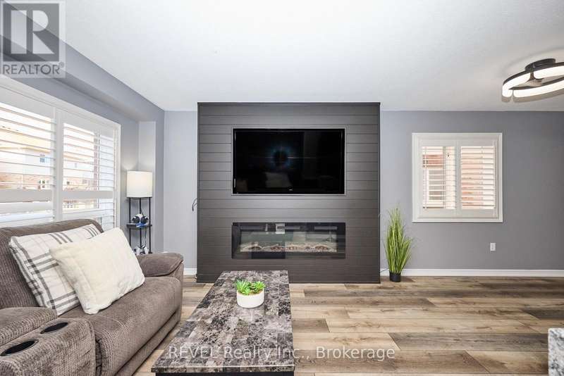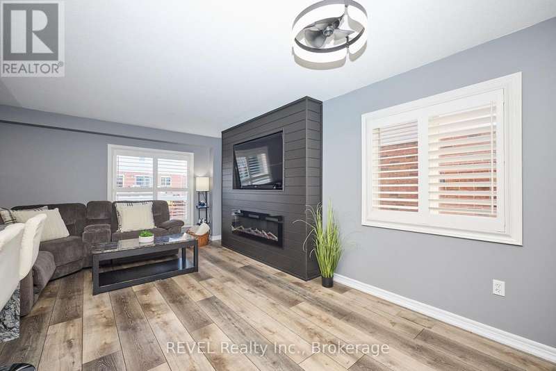 Beautifully Updated 2-Storey Townhome in Grimsby! Step into this stylish, move-in ready home where modern updates meet everyday convenience. The open-concept main floor is designed for both comfort and entertaining, featuring a spacious living room with custom feature wall encompassing a built in electric fireplace, and TV space. Main floor also features an eat-in kitchen with granite counters, a stunning waterfall island, custom built-in PITT gas stovetop, built-in range, and soft-close cabinetry. California shutters throughout add elegance, while sliding doors lead to a private, fully fenced yard with patio. Upstairs, retreat to a generous primary suite with an ensuite featuring a beautiful custom shower. Upstairs is complimented by two additional bedrooms, a 4-piece bath, and a convenient laundry area with tub. The finished basement extends your living space with a cozy family room and plenty of storage. Enjoy the practicality of an attached 1.5-car garage with a side-mount door opener and direct walkout to the backyard. The only shared wall is within the garage. No living spaces are attached, offering the privacy and comfort of a detached home. Every detail has been thoughtfully designed with high-end finishes, making this home an absolute must-see in Grimsby. (id:7434)