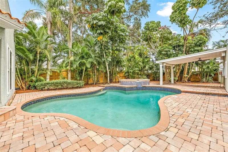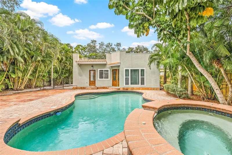 Great opportunity to live in one of South Tampa’s most sought-after neighborhoods. Originally built in 1924, this pool home residence blends historic character with modern updates. The home offers 3 bedrooms and 2 bathrooms, featuring a stained-glass entryway, sunroom, fireplace, and formal dining. The primary suite includes double sinks, antique lighting, and a jetted soaking tub. Step outside to a private tropical oasis with a heated pool, built-in spa, and fenced backyard framed by Areca Palms for privacy. Additionally, there is a detached pool home with its own bath and laundry hookup. Located within walking distance to Hyde Park Village, Bayshore Boulevard, and SOHO’s shops and restaurants, and close to top-rated schools, this residence offers both convenience and charm. Come and see it today!